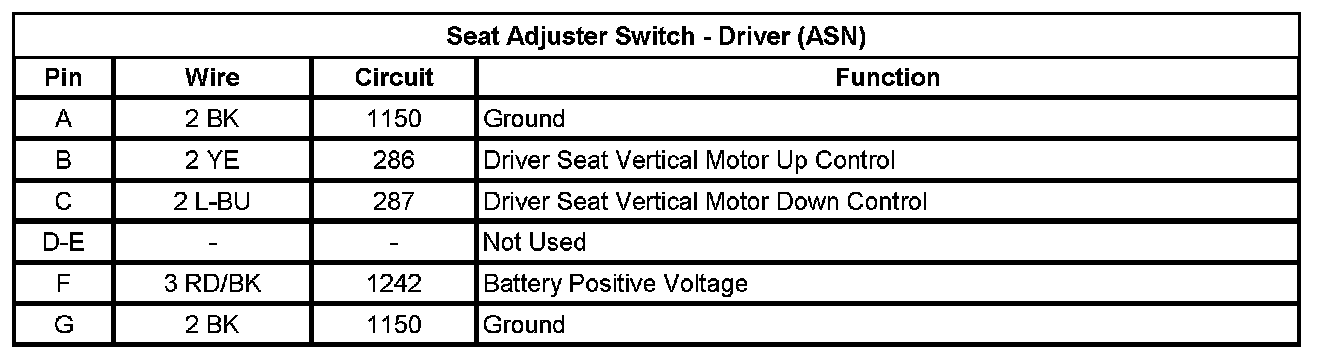 Seat Adjuster Switch - Driver (ASN)