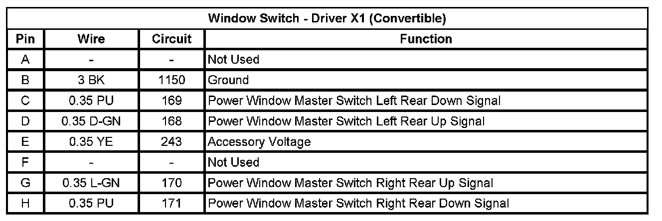 Window Switch - Driver X1 (Convertible)