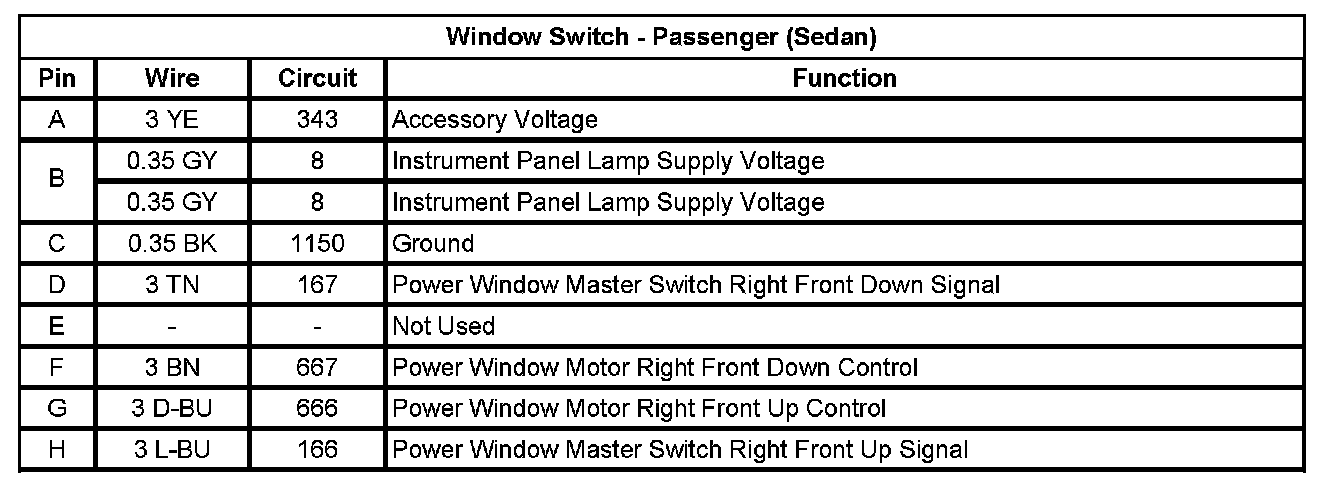 Window Switch - Passenger (Sedan)
