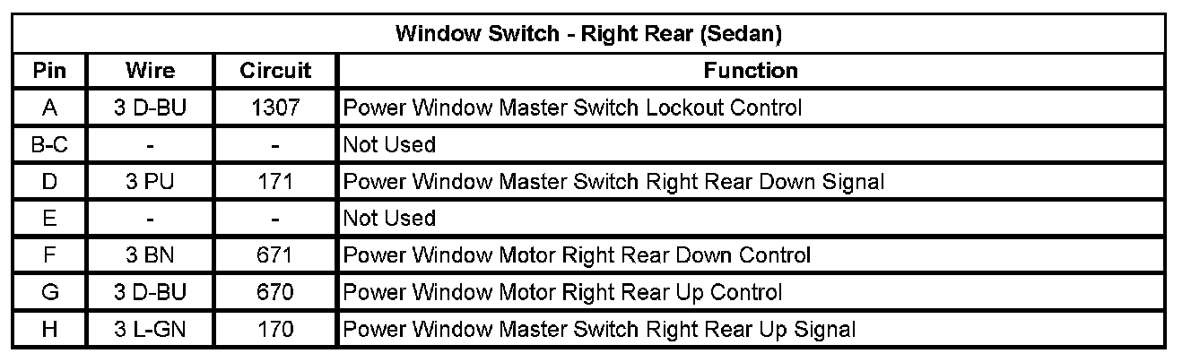 Window Switch - Right Rear (Sedan)