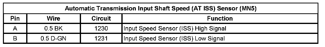 Automatic Transmission Input Shaft Speed (AT ISS) Sensor (MN5)