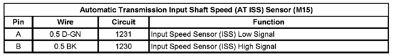 Automatic Transmission Input Shaft Speed (AT ISS) Sensor (M15)