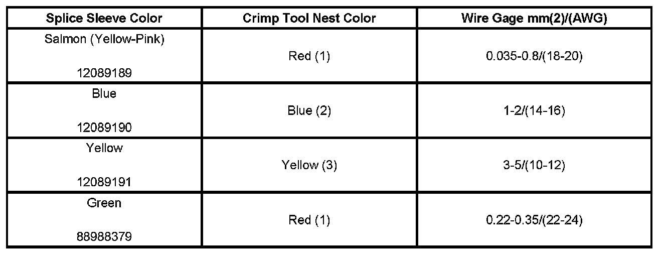 6. Select the proper DuraSeal splice sleeve according to the wire size. Refer to the above table at the beginning of the repair procedure for the color coding of the DuraSeal splice sleeves and the crimp tool nests.