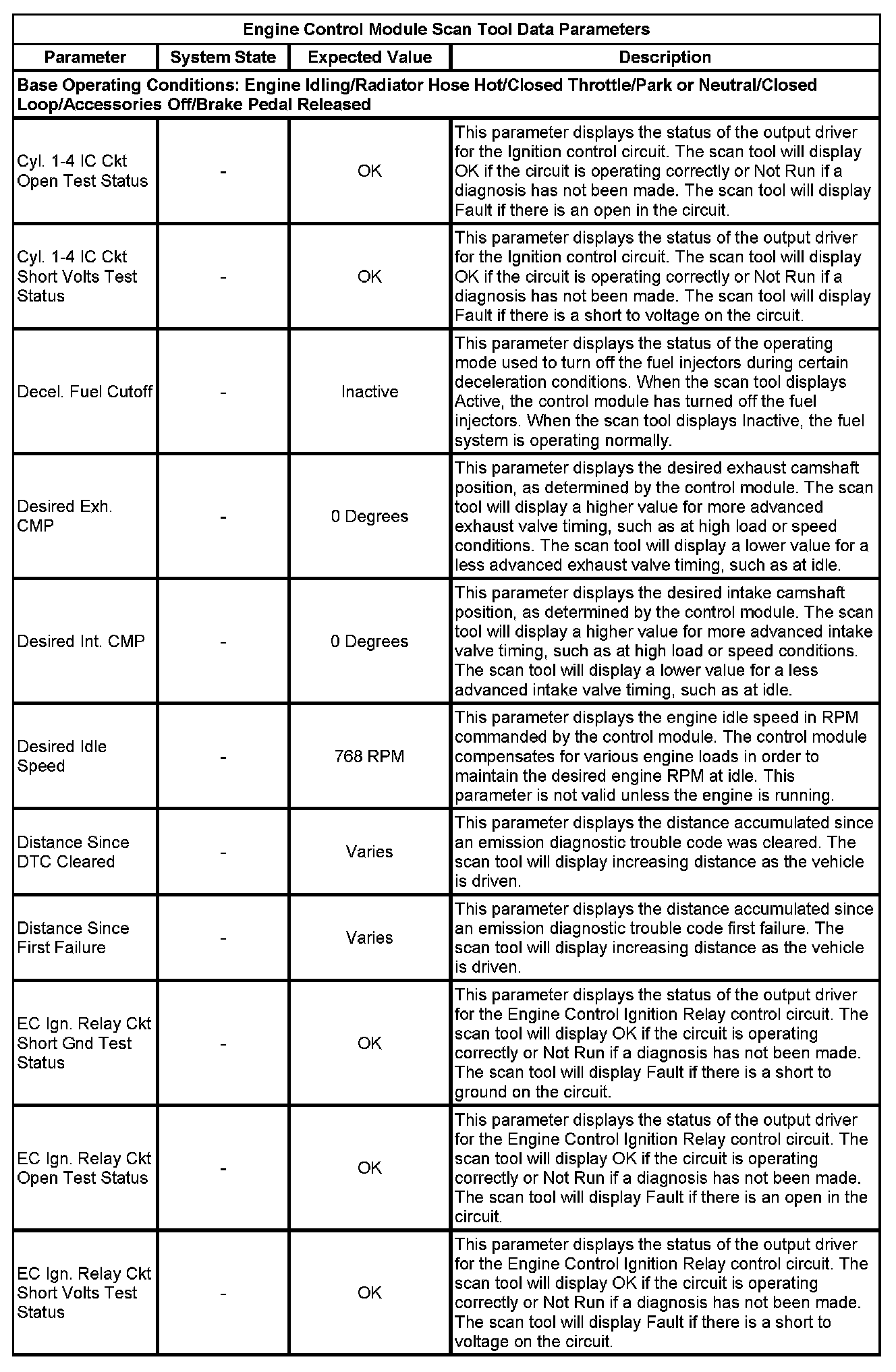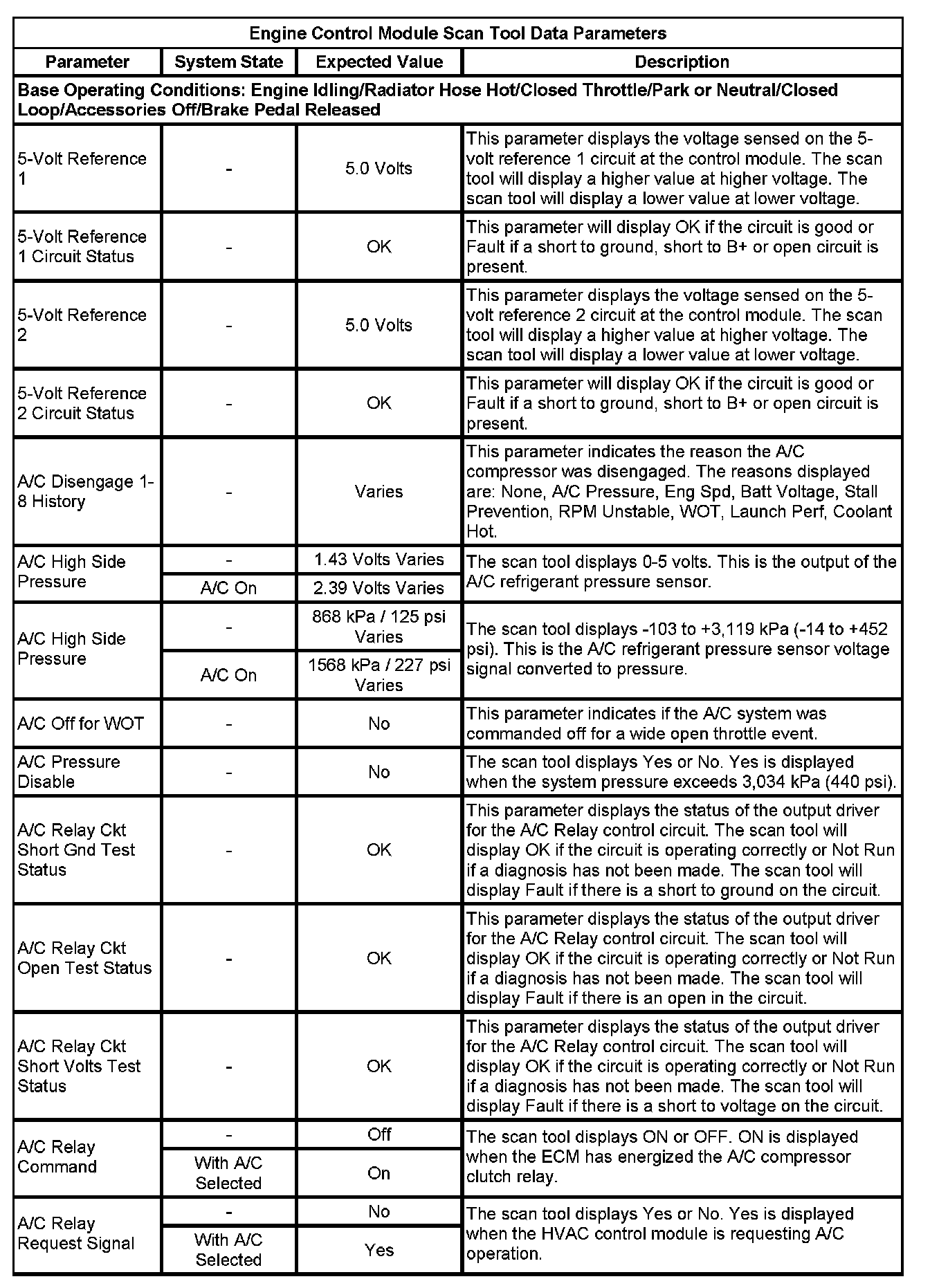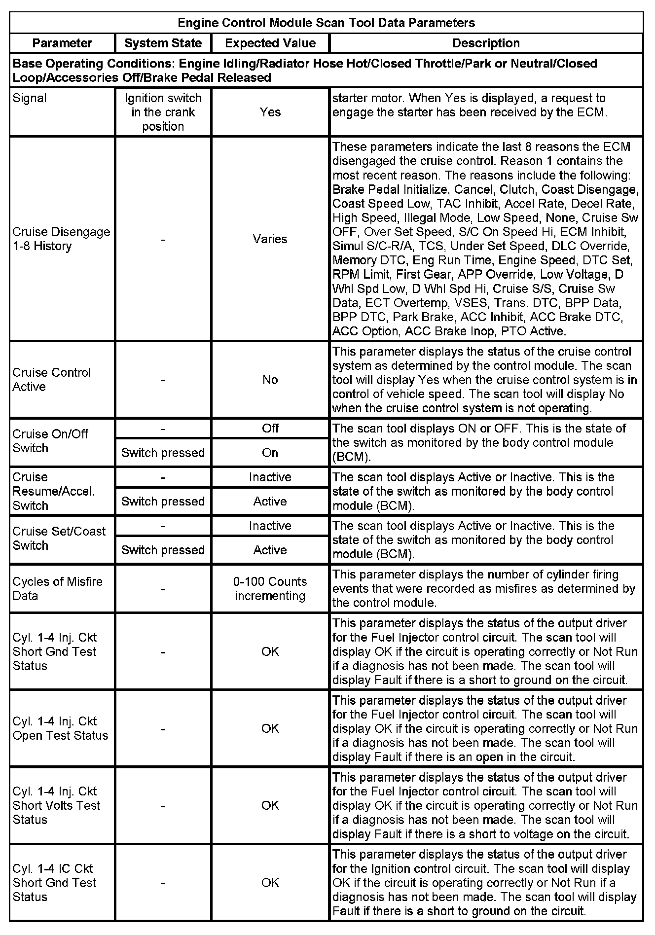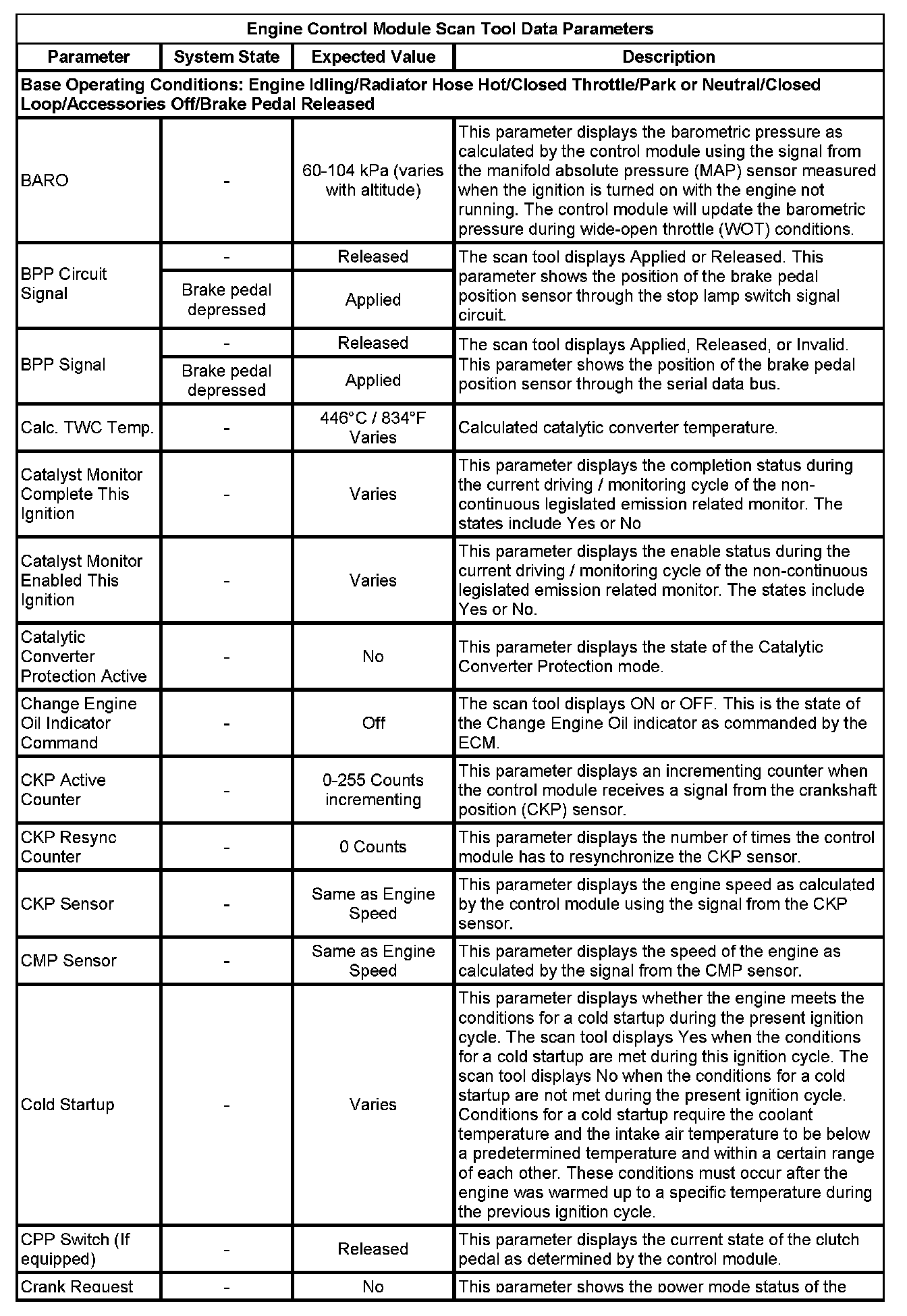 The Engine Control Module Scan Tool Data List contains all engine-related parameters that are available on the scan tool. The list is arranged in alphabetical order. A given parameter may appear in any one of the data lists, and in some cases may appear more than once, or in more than one data list in order to group certain related parameters together.