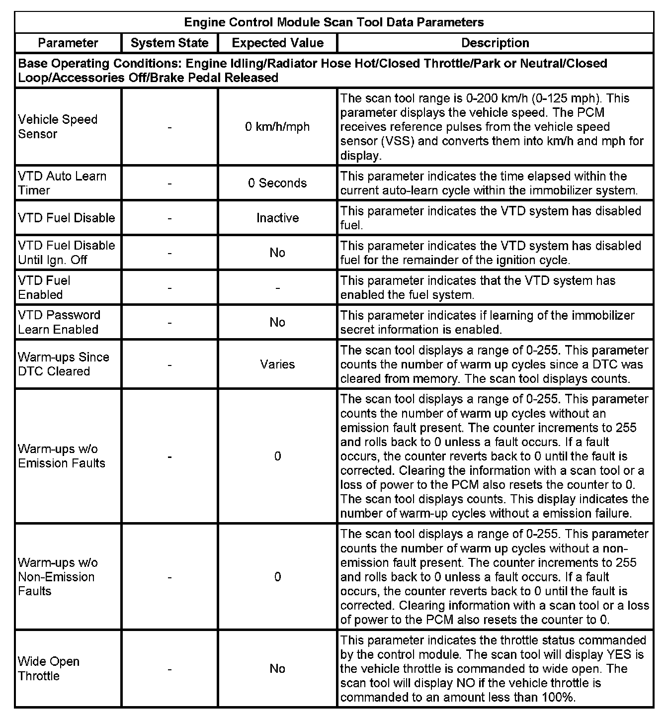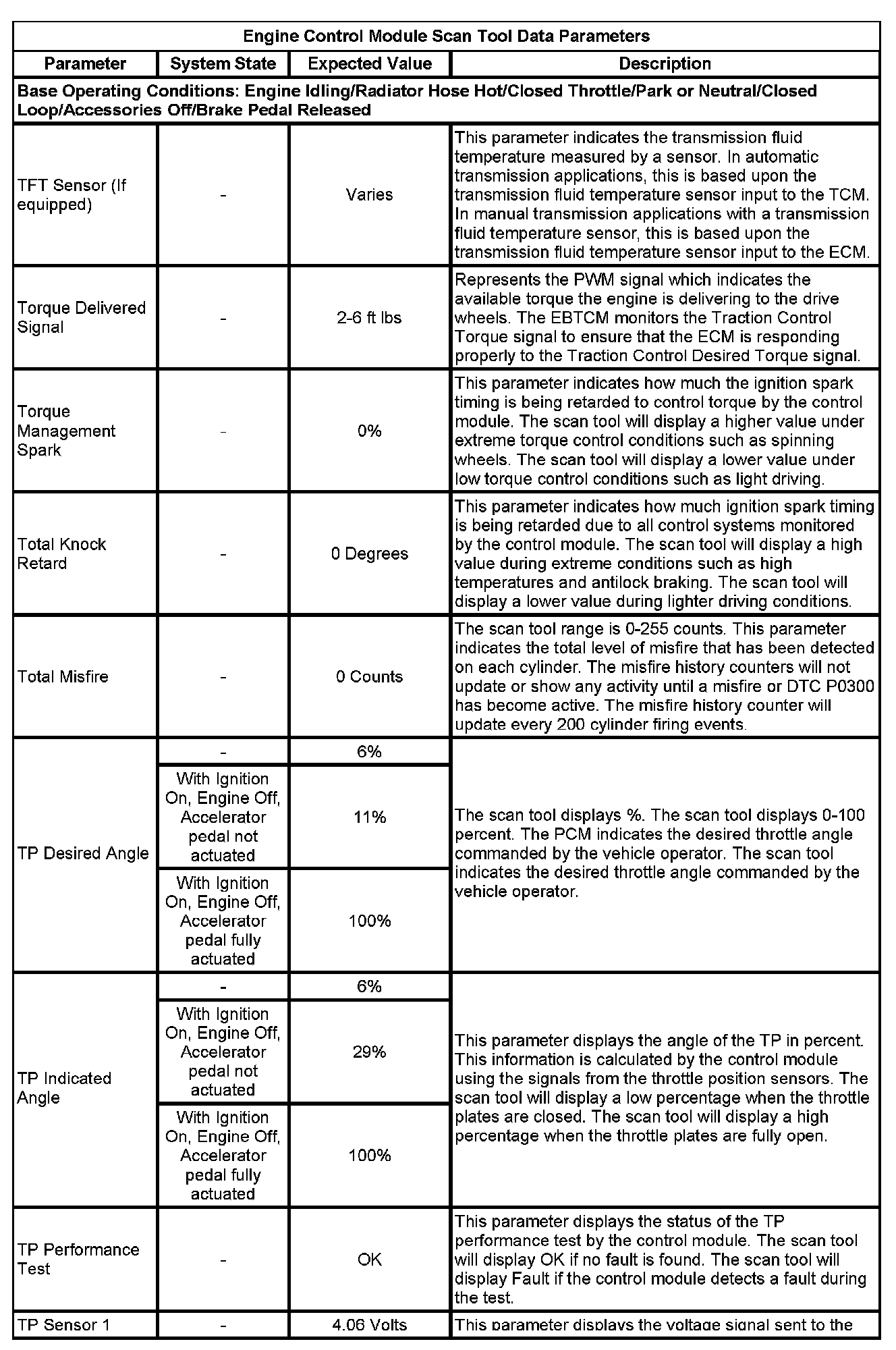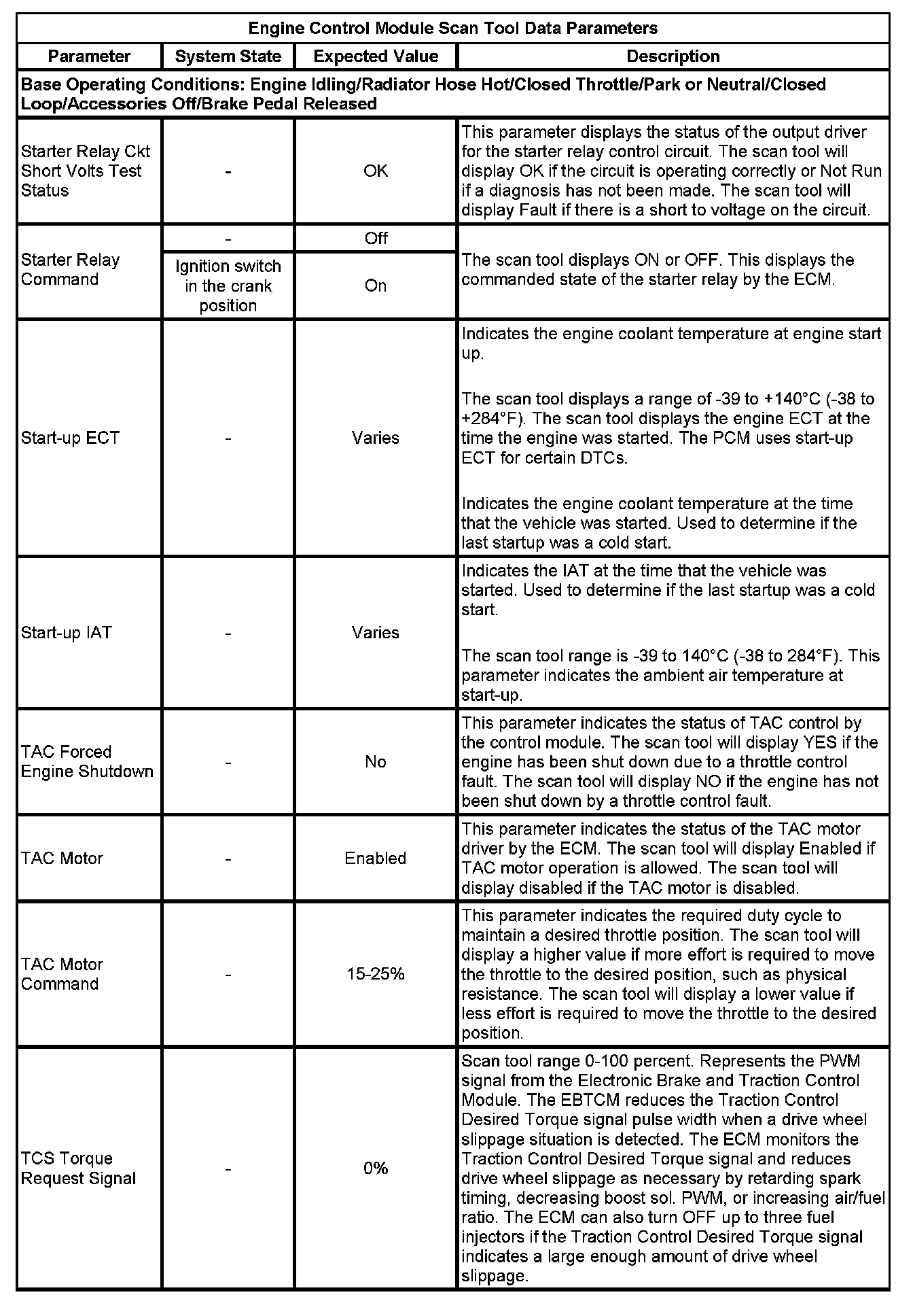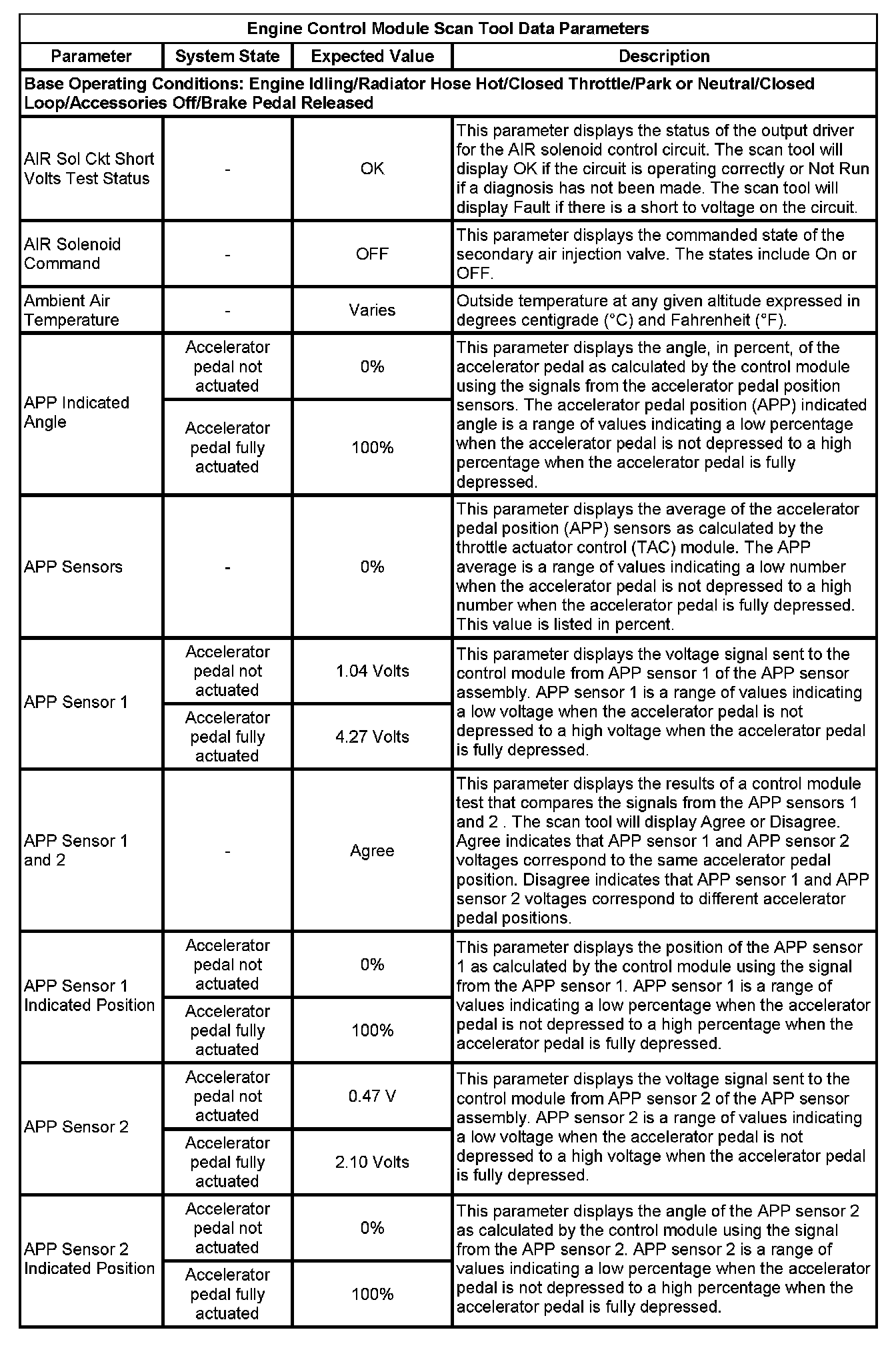 The Engine Control Module Scan Tool Data List contains all engine-related parameters that are available on the scan tool. The list is arranged in alphabetical order. A given parameter may appear in any one of the data lists, and in some cases may appear more than once, or in more than one data list in order to group certain related parameters together.