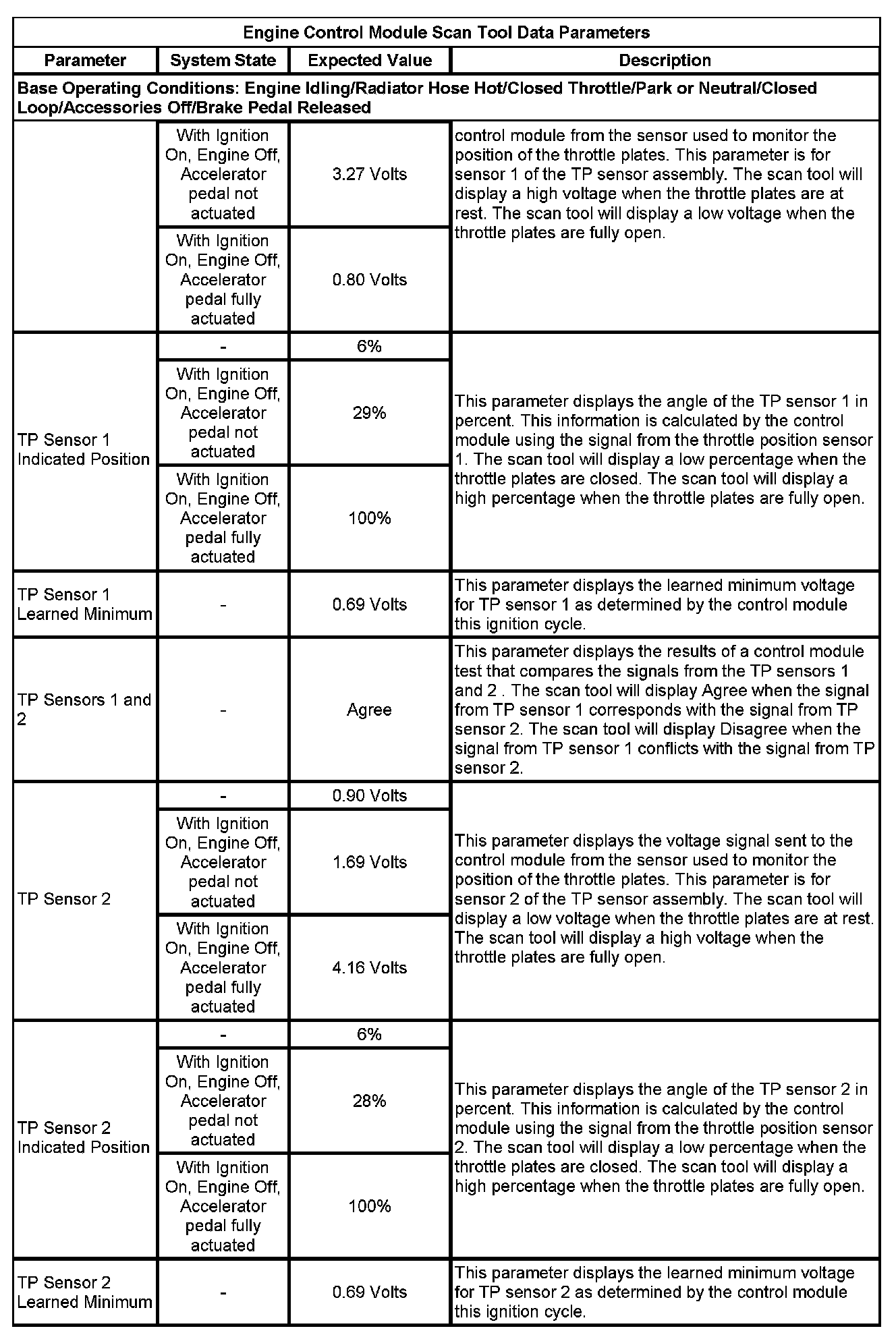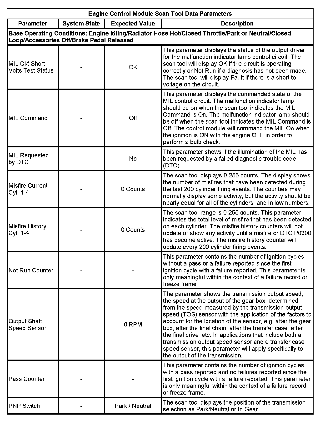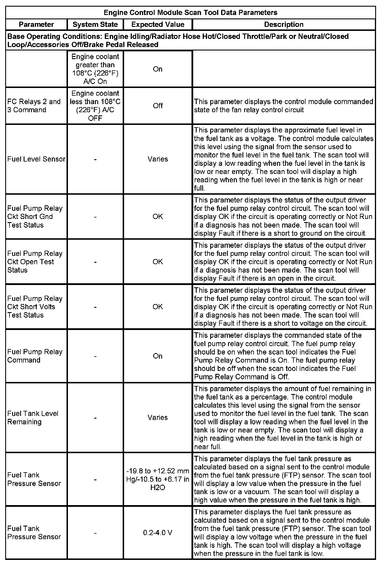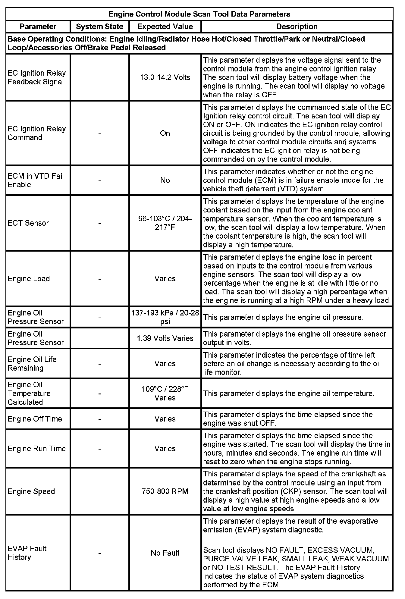 The scan tool values from a properly running engine may be used for comparison with the engine you are diagnosing. The Engine Scan Tool Data List represents values that would be seen on a normally running engine.