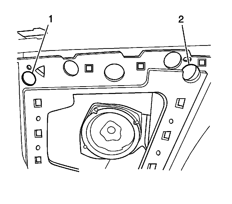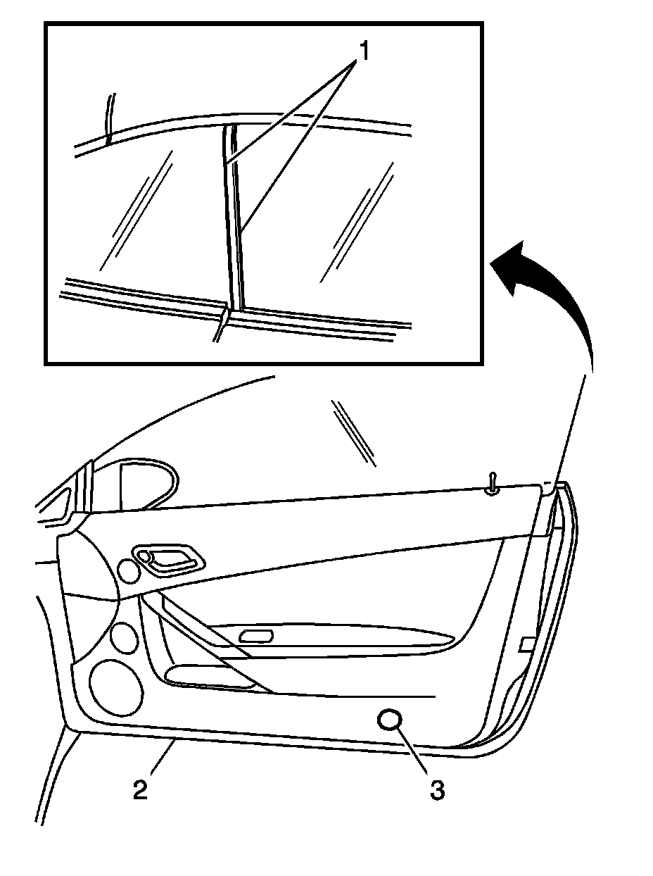 1. Remove the access plug from the bottom of door to access the front rail on the window regulator (2).