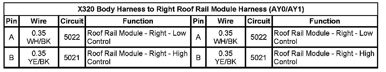X320 Body Harness to Right Roof Rail Module Harness (AY0/AY1)