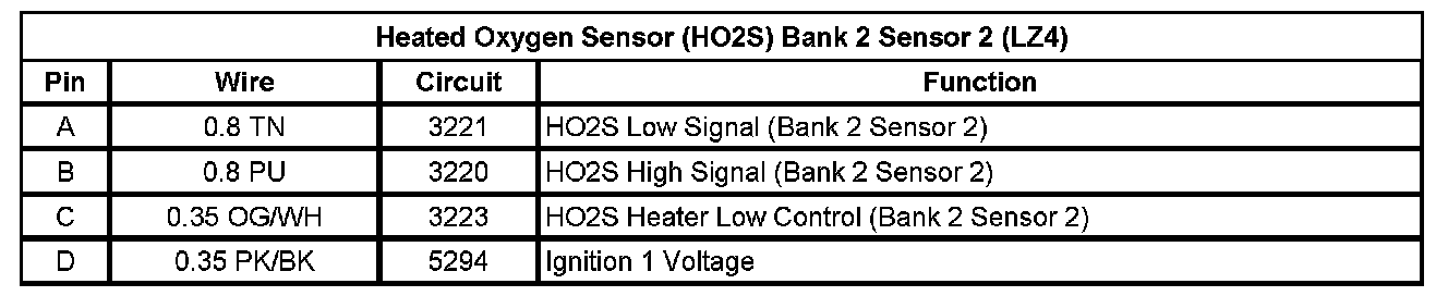Heated Oxygen Sensor (HO2S) Bank 2 Sensor 1 (LZ4)