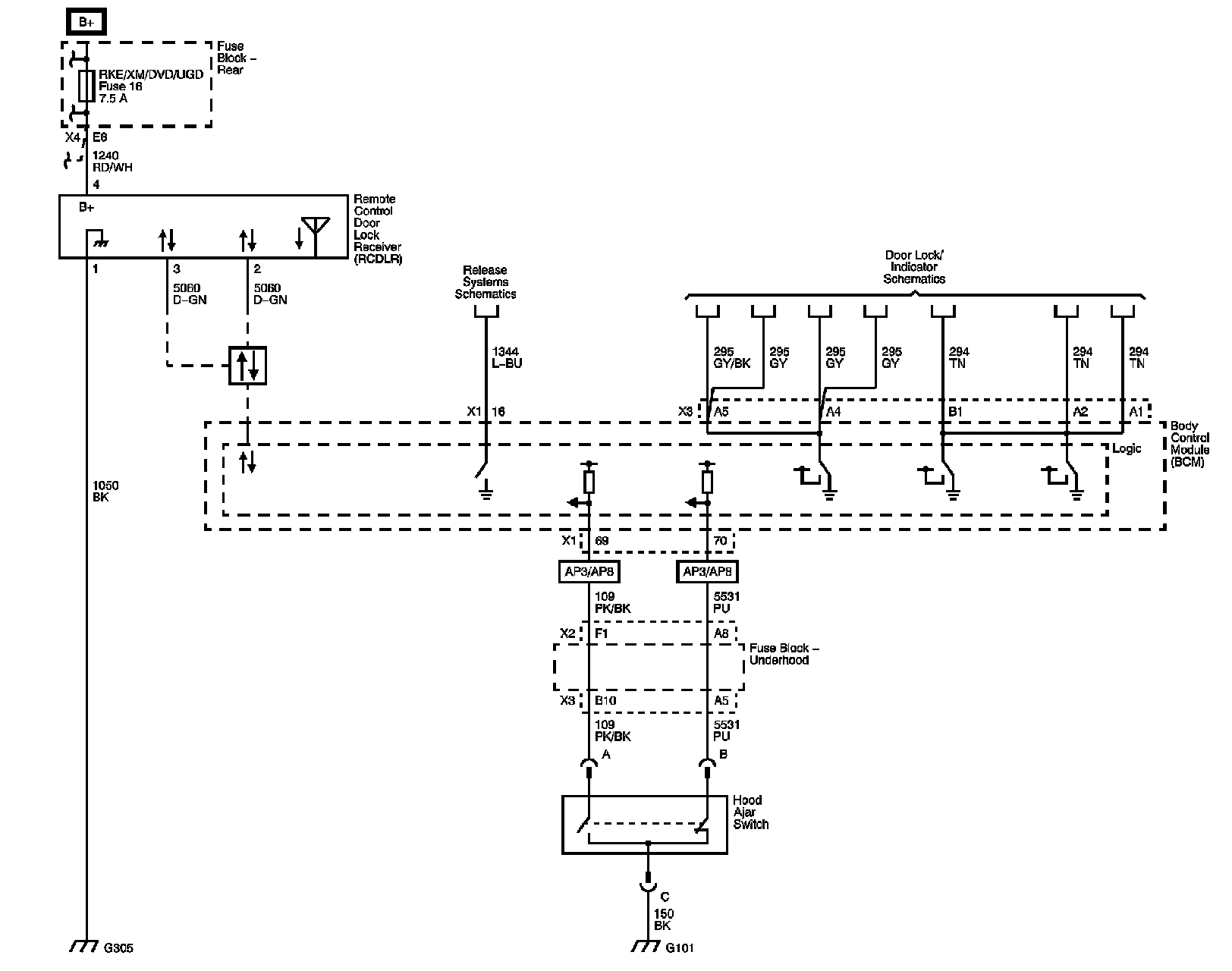 The locations for the Connectors, Grounds, Splices, and Grommets shown within these diagrams can be found via their numbers at Vehicle Locations.