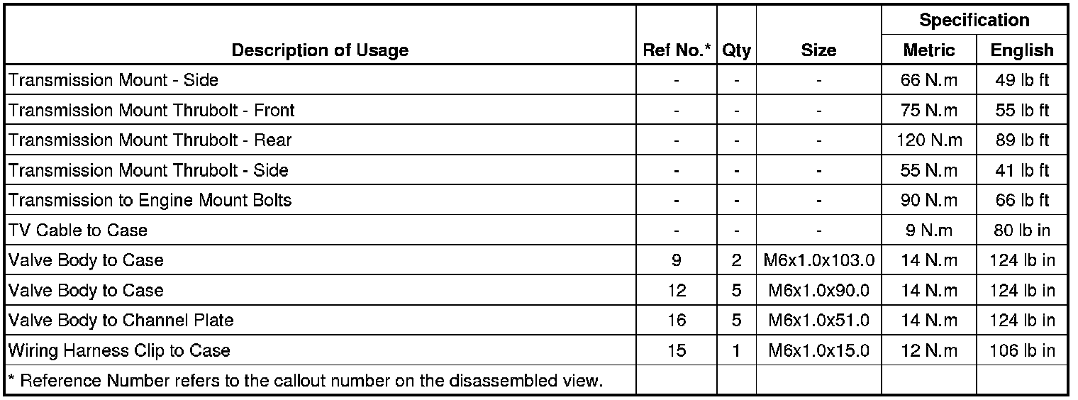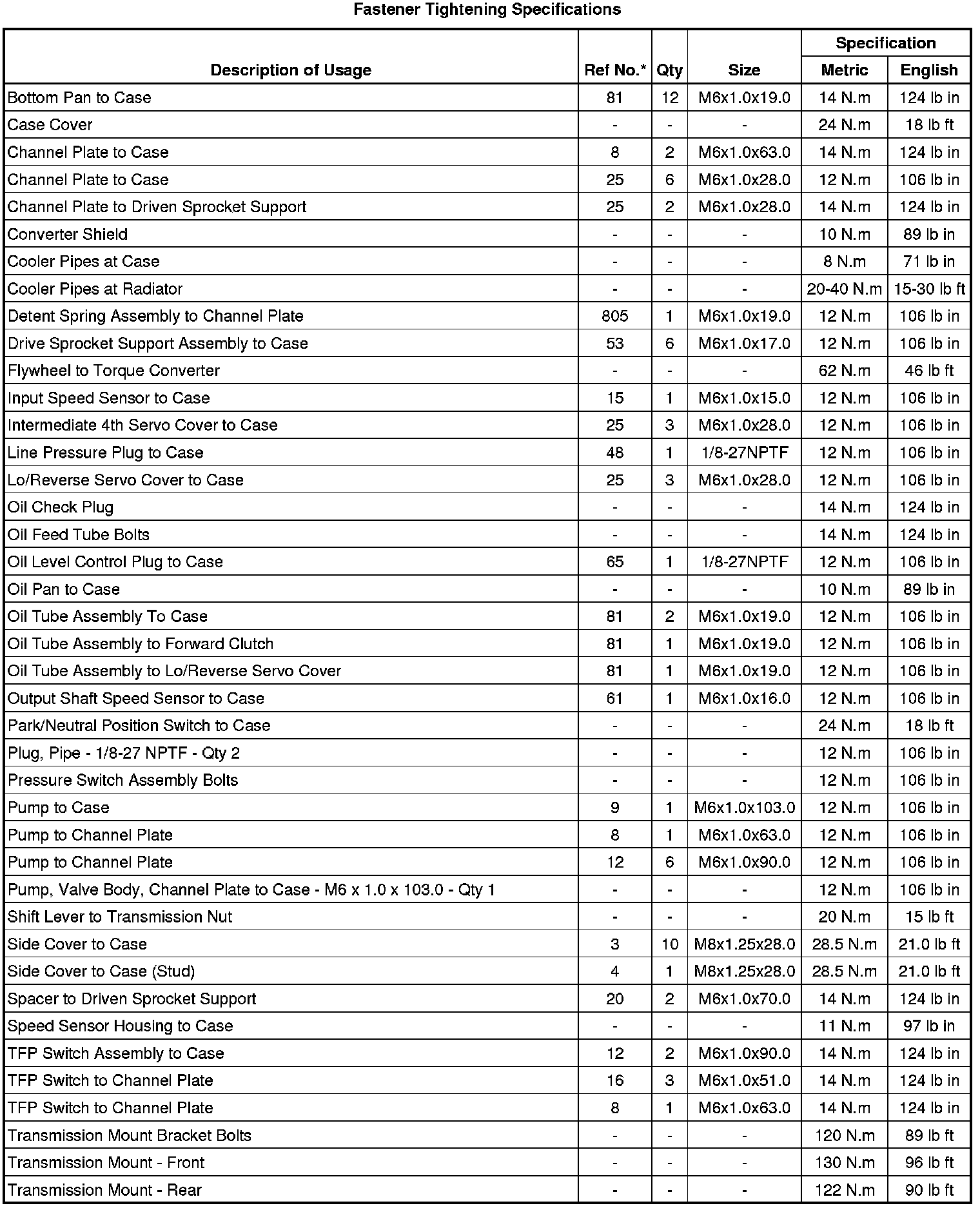 Fastener Tightening Specifications
