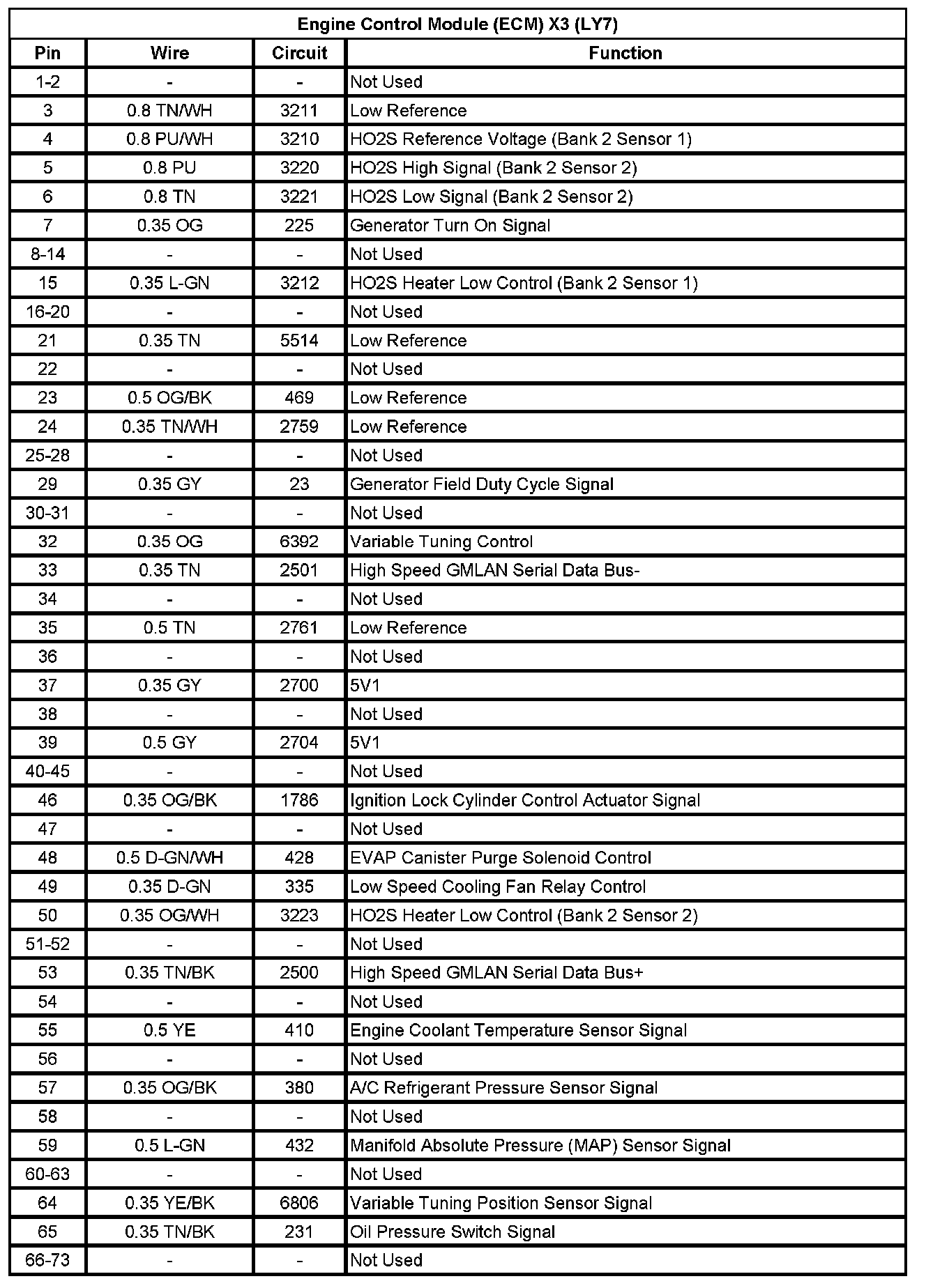 Engine Control Module (ECM) X2 (LY7) (Pin 28 To 73):
