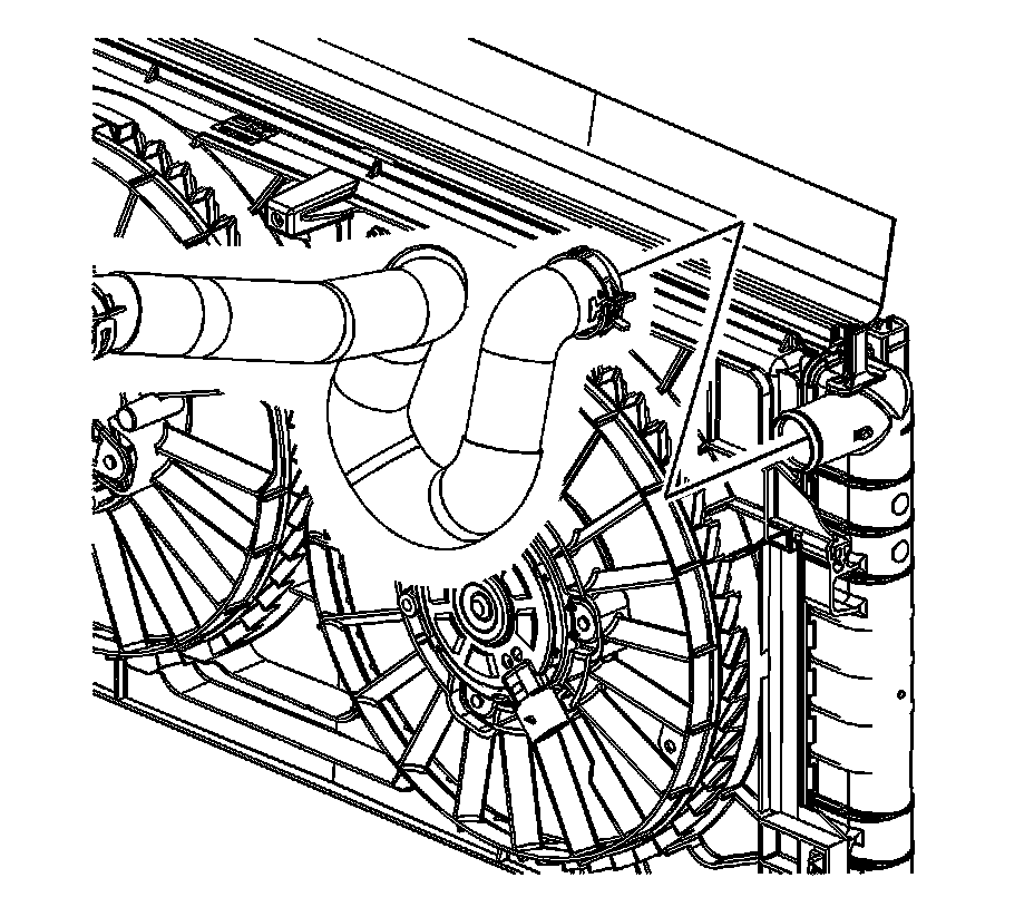 11. Reposition the radiator outlet hose clamp at the radiator using the pliers J 38185 .