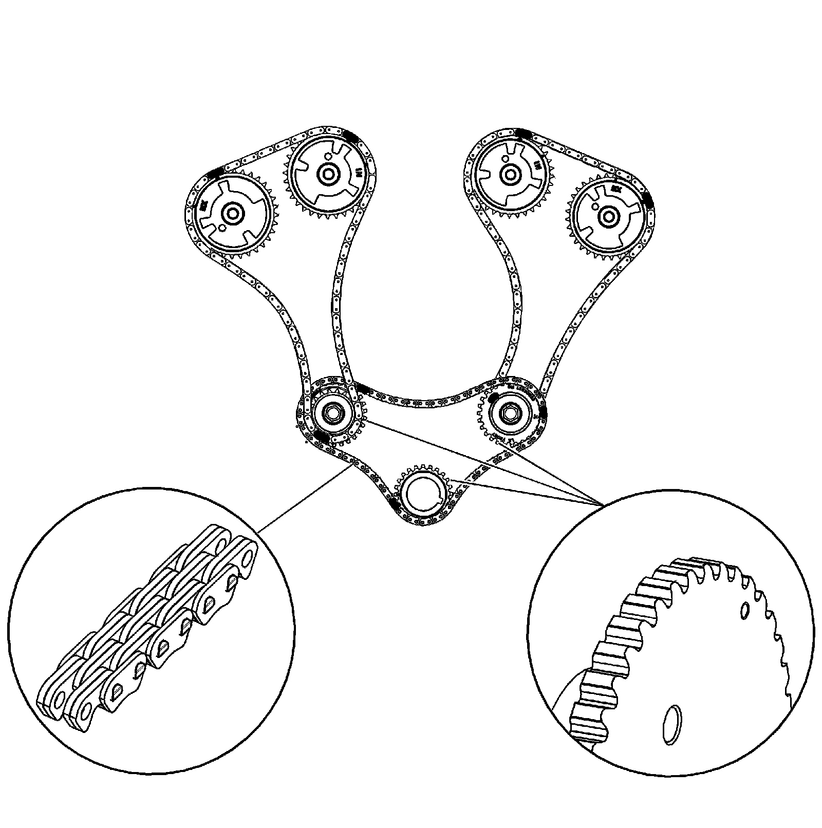 * The camshaft position actuators incorporate new sprockets that correspond with the use of IT chains on the secondary timing drive system.
