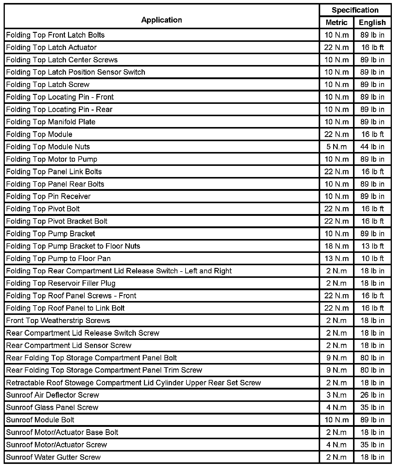 Fastener Tightening Specifications