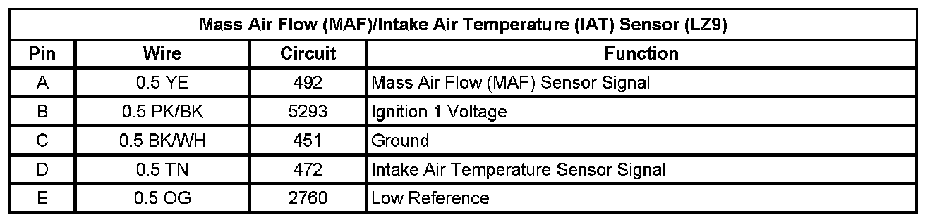 Mass Air Flow (MAF)/Intake Air Temperature (IAT) Sensor (LZ9)