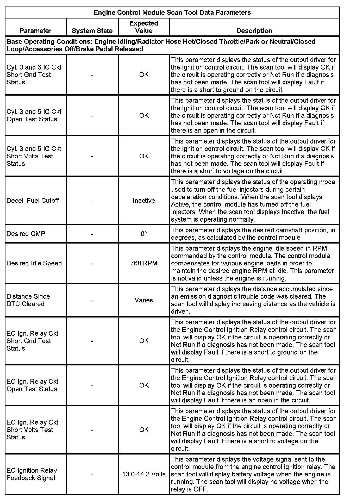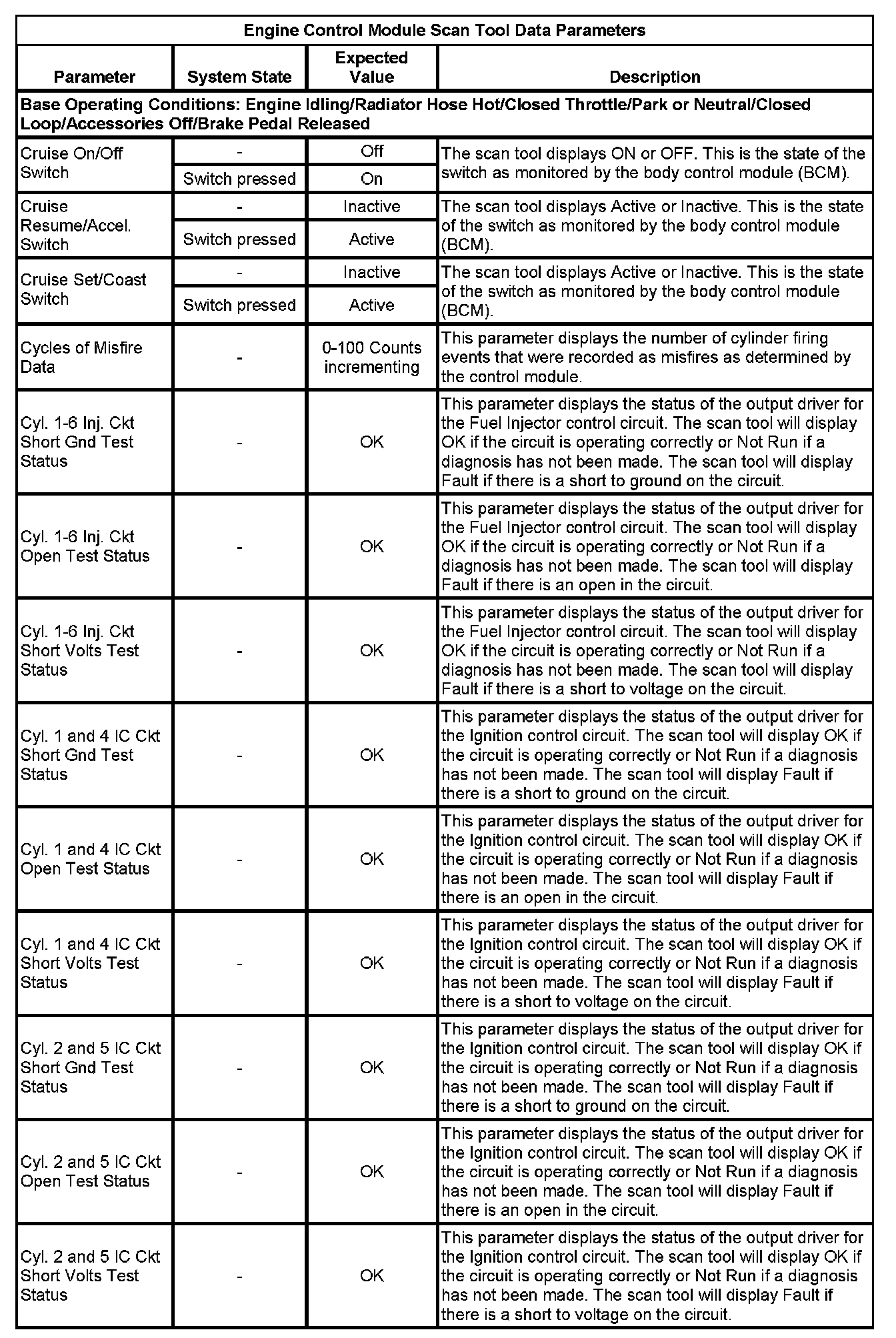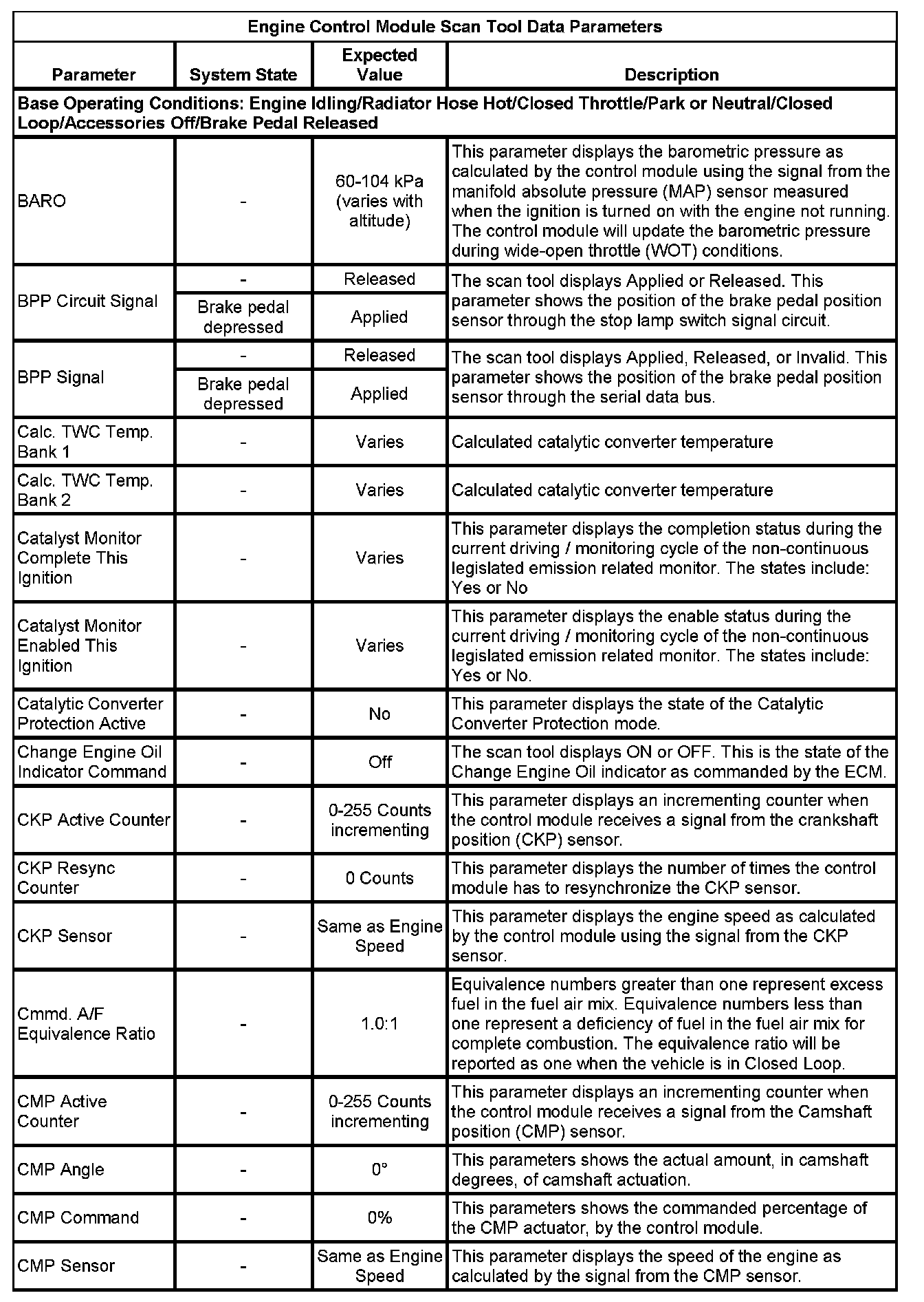 The Engine Control Module Scan Tool Data List contains all engine-related parameters that are available on the scan tool. The list is arranged in alphabetical order. A given parameter may appear in any one of the data lists, and in some cases may appear more than once, or in more than one data list in order to group certain related parameters together.