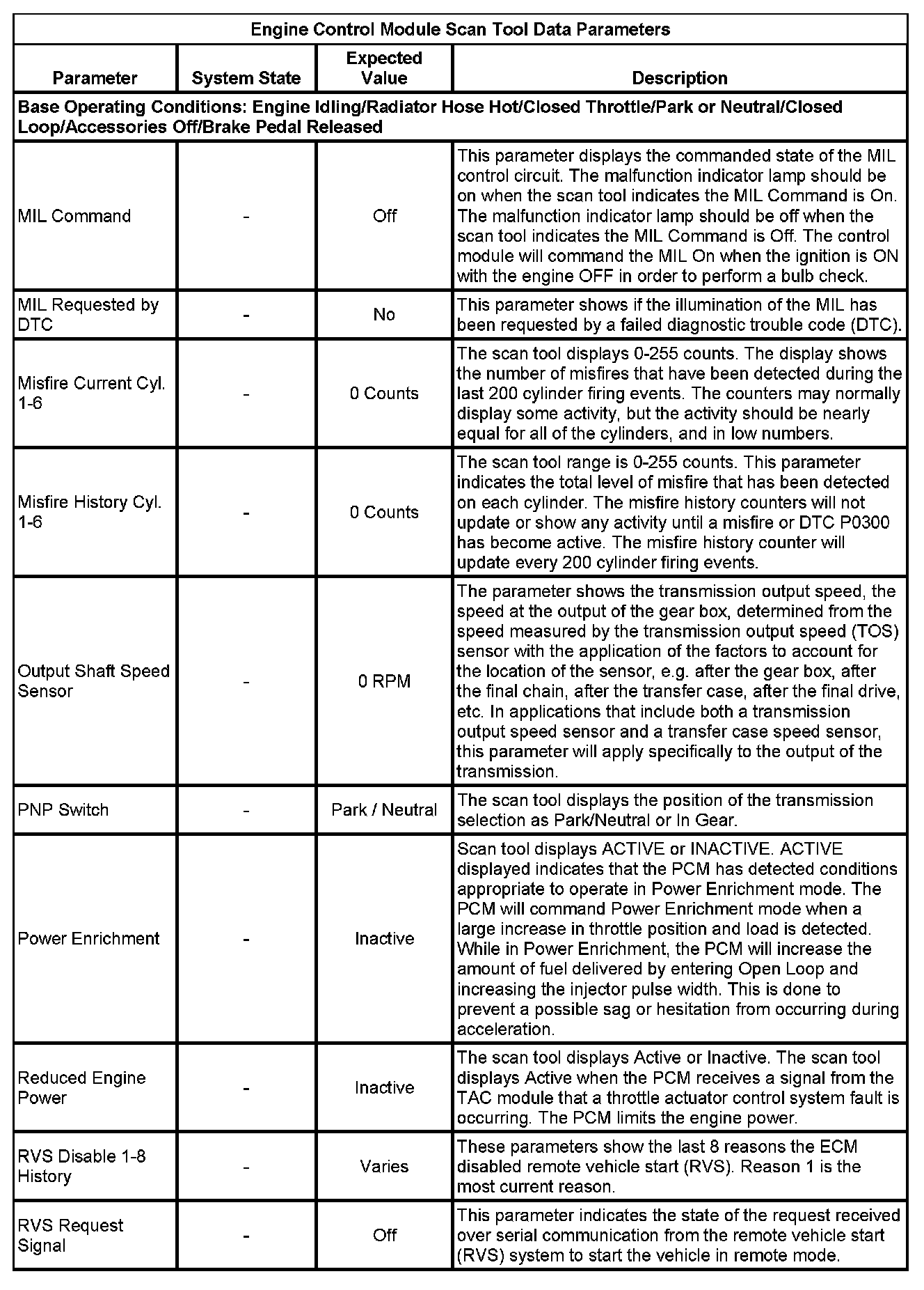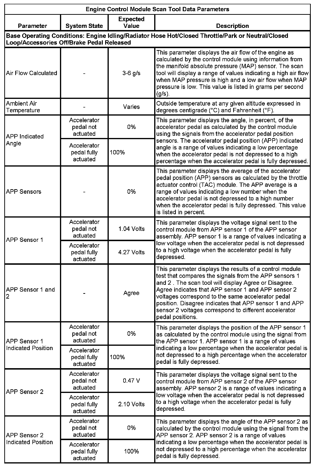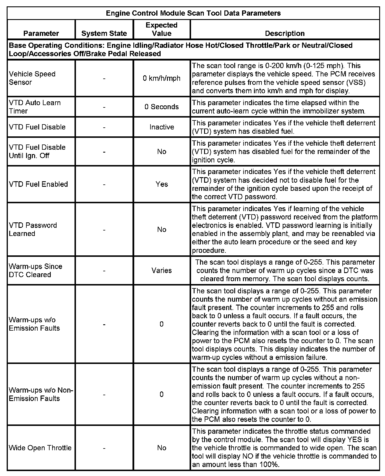 The Engine Control Module Scan Tool Data List contains all engine-related parameters that are available on the scan tool. The list is arranged in alphabetical order. A given parameter may appear in any one of the data lists, and in some cases may appear more than once, or in more than one data list in order to group certain related parameters together.