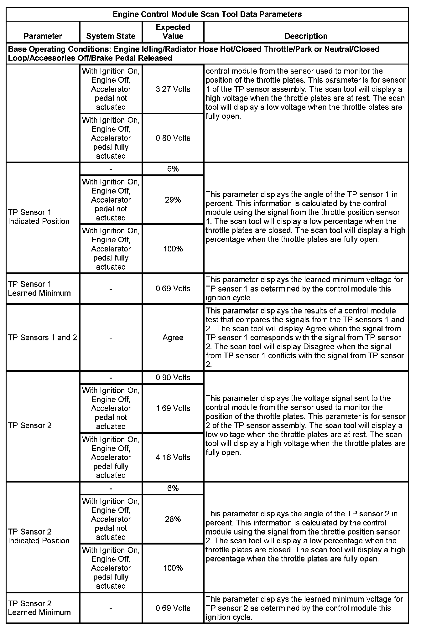 The scan tool values from a properly running engine may be used for comparison with the engine you are diagnosing. The Engine Scan Tool Data List represents values that would be seen on a normally running engine.