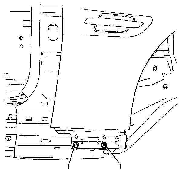 9. Remove the rocker panel moulding. Refer to Rocker Panel Molding Replacement () .