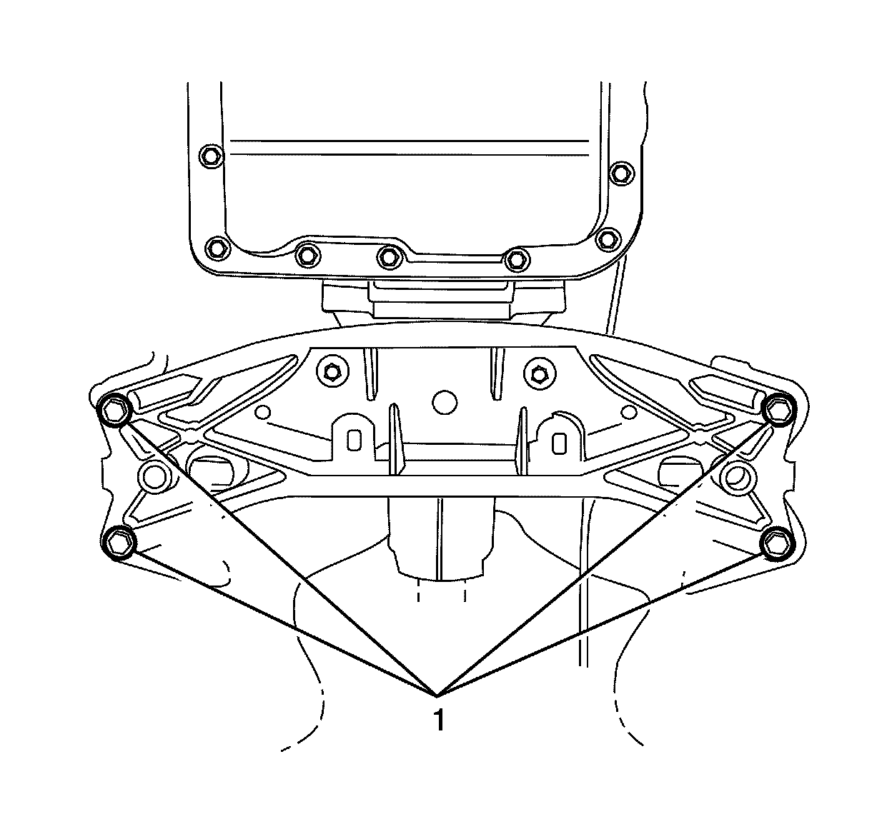 Important: Do not fully tighten the transmission support mounting retaining bolts at this stage.