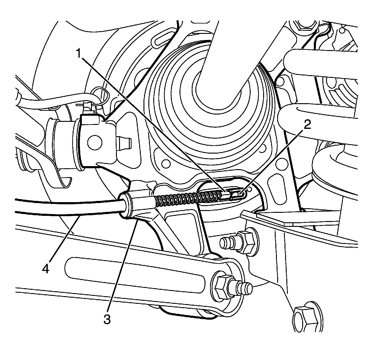 1.Install the rear park brake cable (4) into the rear knuckle (3).