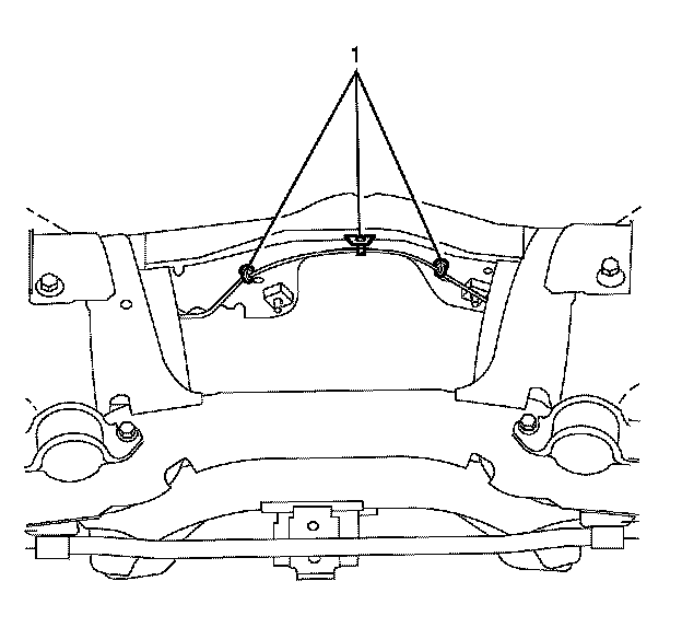 1.Connect the rear frame wiring harness to rear subframe center retaining clips (1).