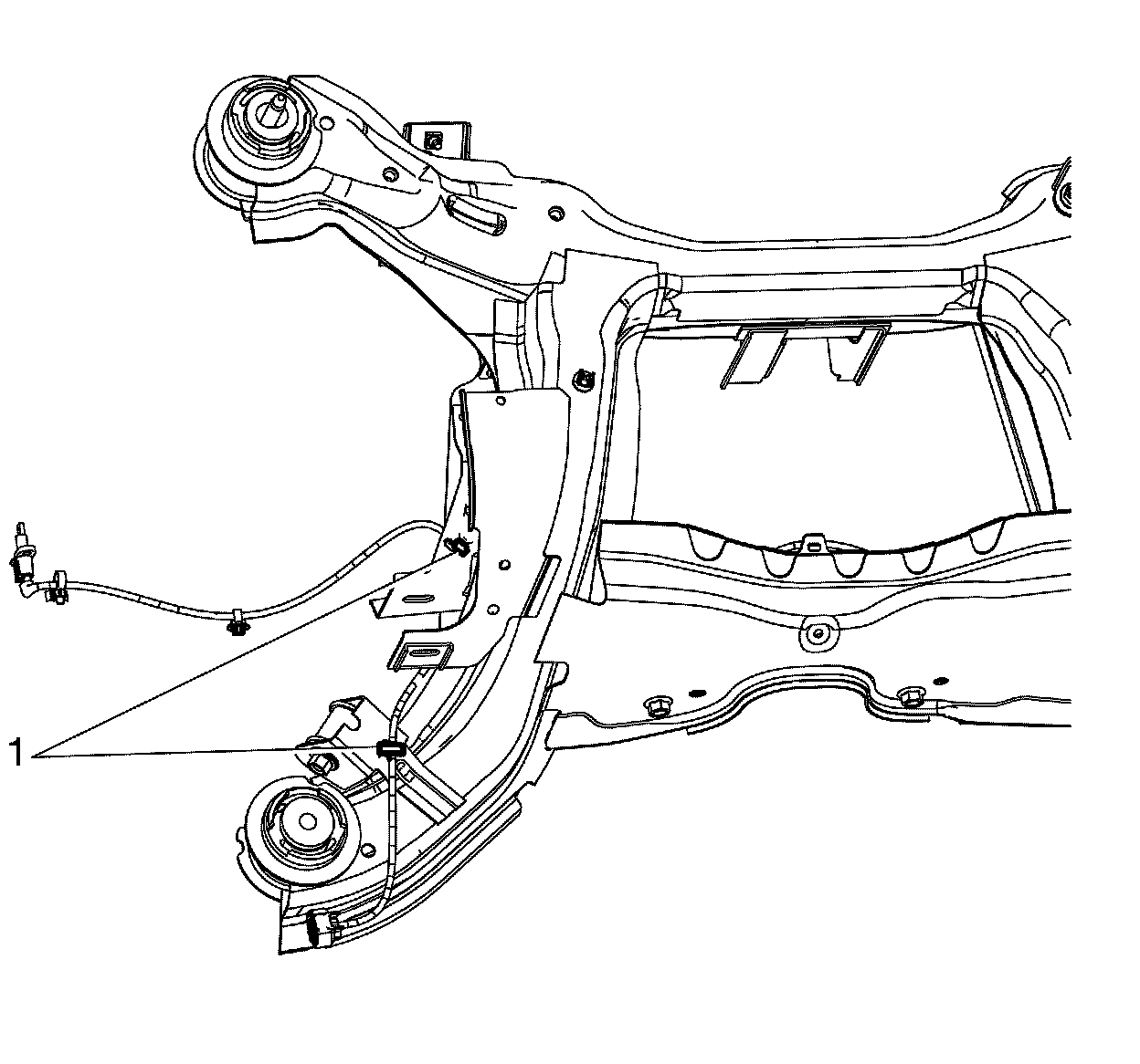 2.Install the lower control arm to rear subframe retaining bolt (1).