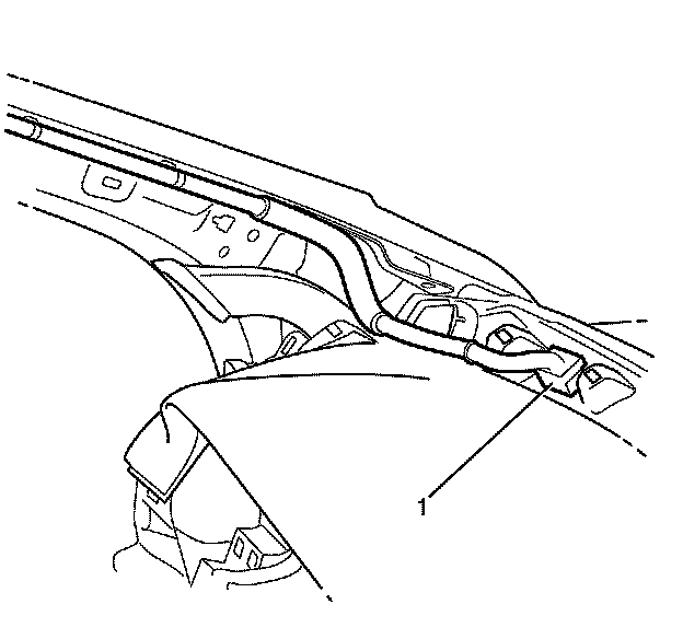3. Detach the headliner wiring harness to A-pillar retaining clips (1).