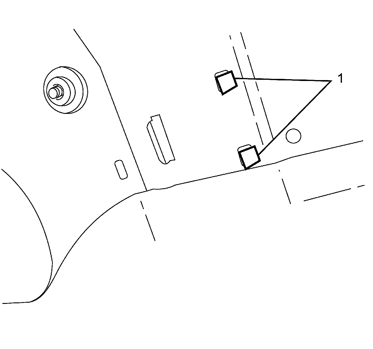 3. Remove the RFA by releasing the two retaining tangs (1) and removing it from the rear window shelf.