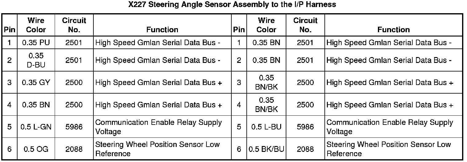 X227 Steering Angle Sensor Assembly to the I/P Harness