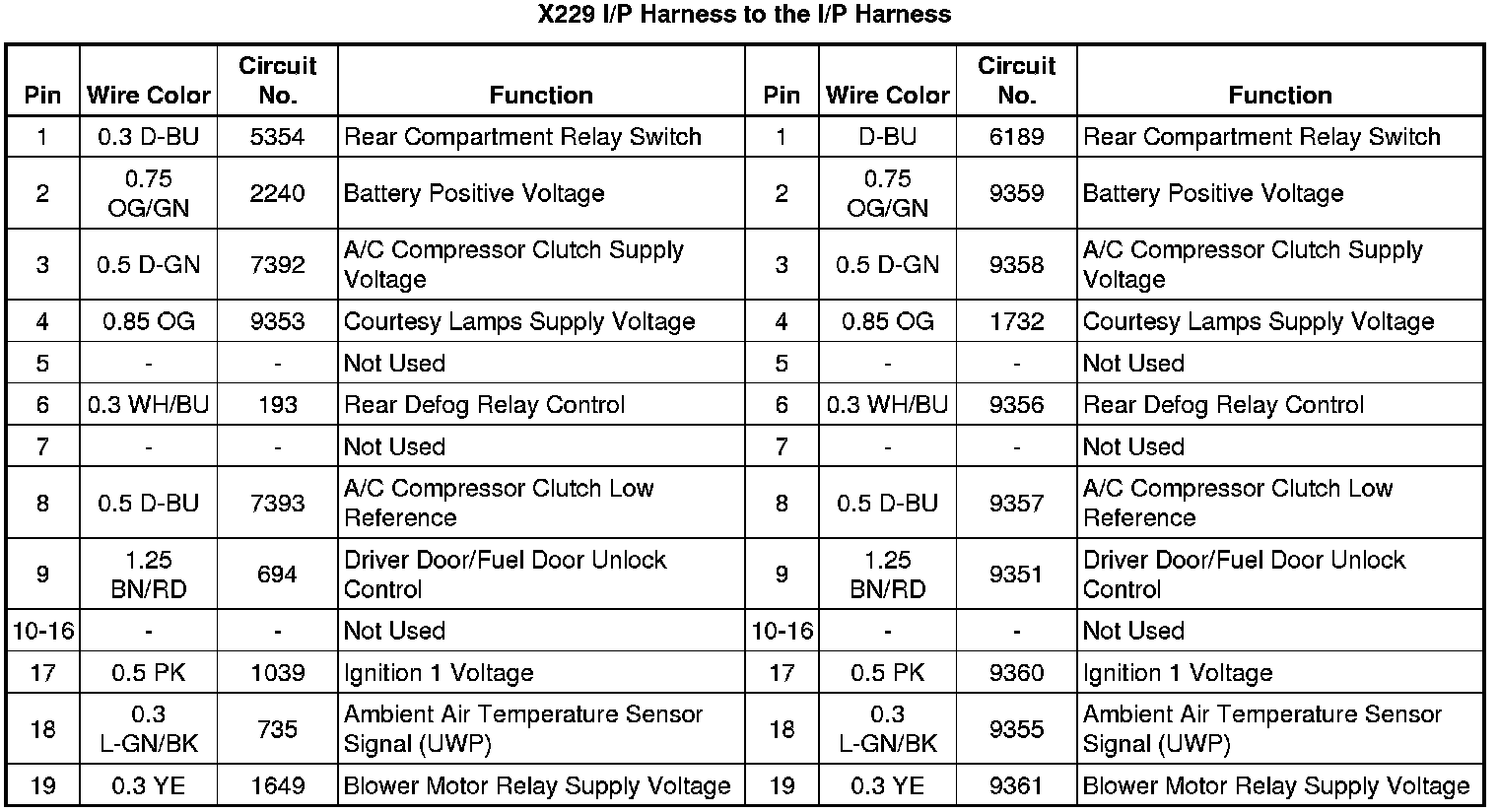 X229 I/P Harness to the I/P Harness
