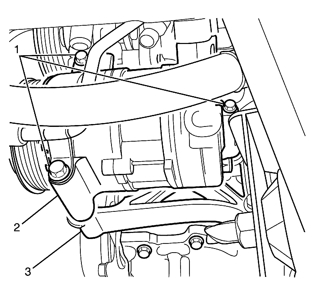 3. Install the compressor to compressor mounting bracket retaining bolts (1).