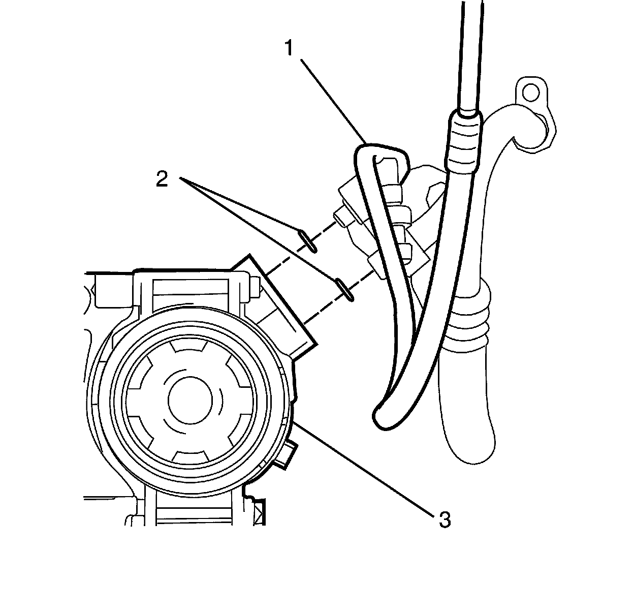 7. Disconnect the suction/discharge pipe pad (1) from the compressor (3).