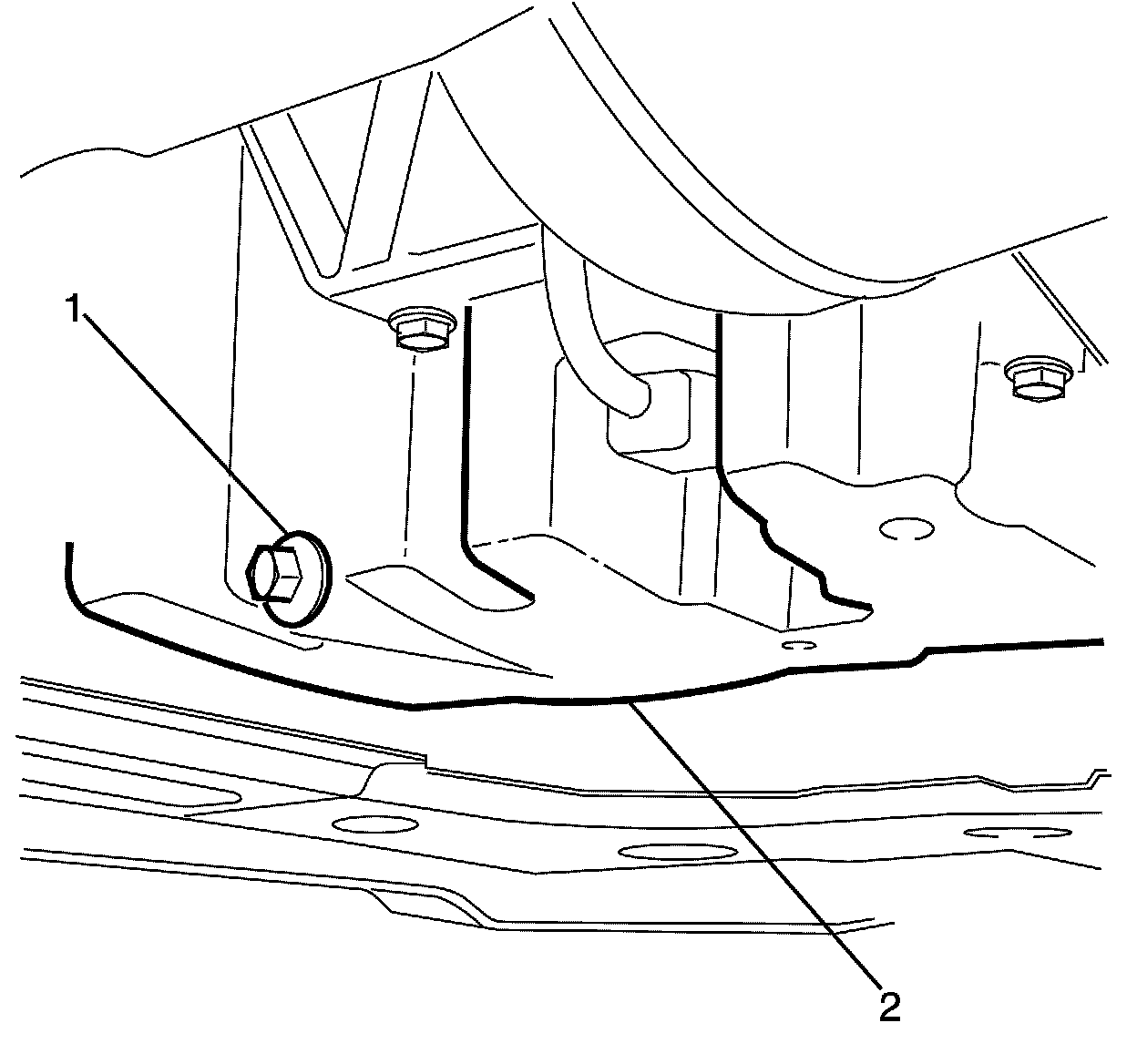1. Install the oil pan drain plug (1) to the oil pan (2).