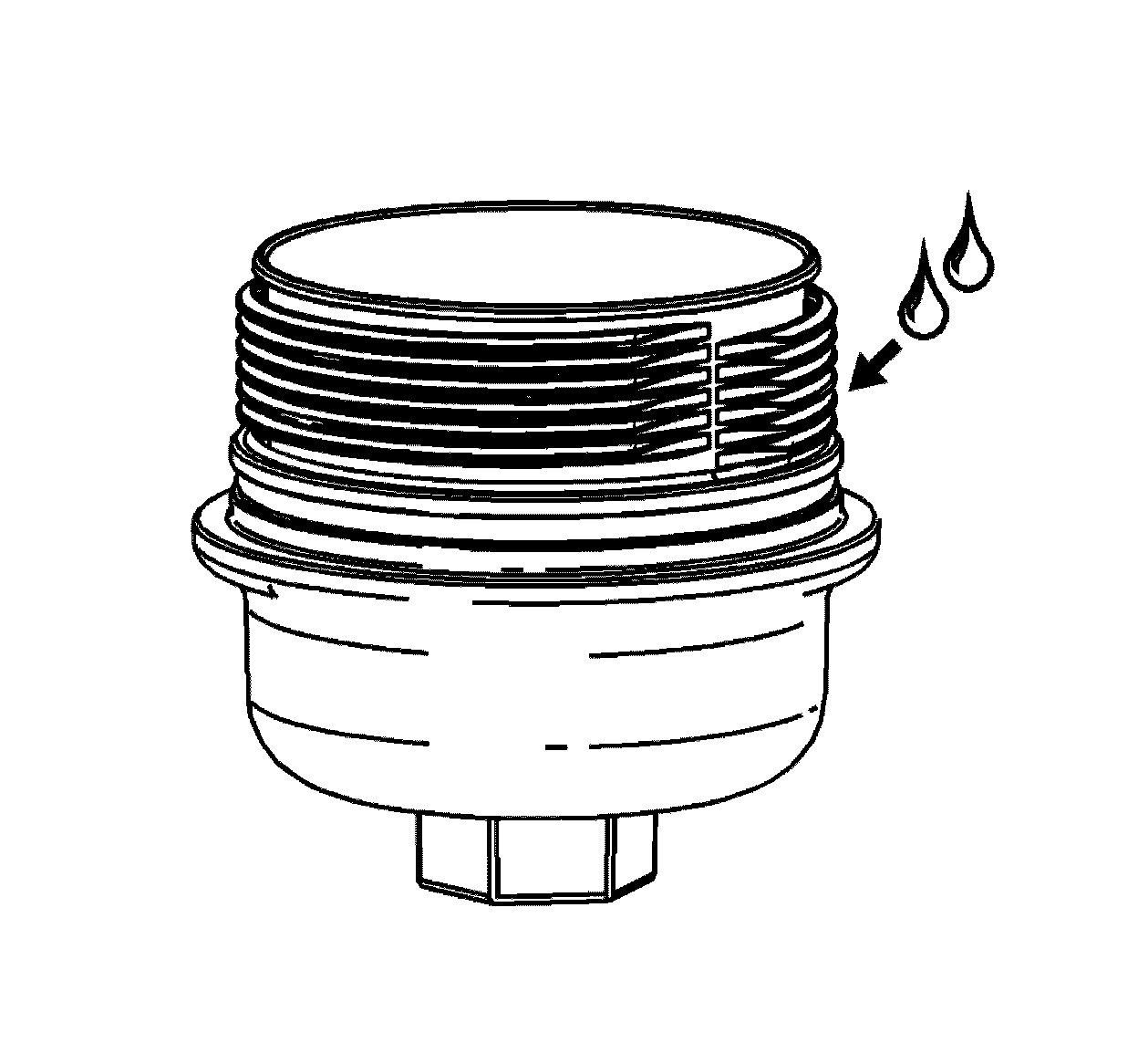 Notice: Lubrication must be applied to the threads of the oil filter cap prior to installation. Failure to lubricate the oil filter cap threads can hinder later removal and cause possible oil filter cap damage.