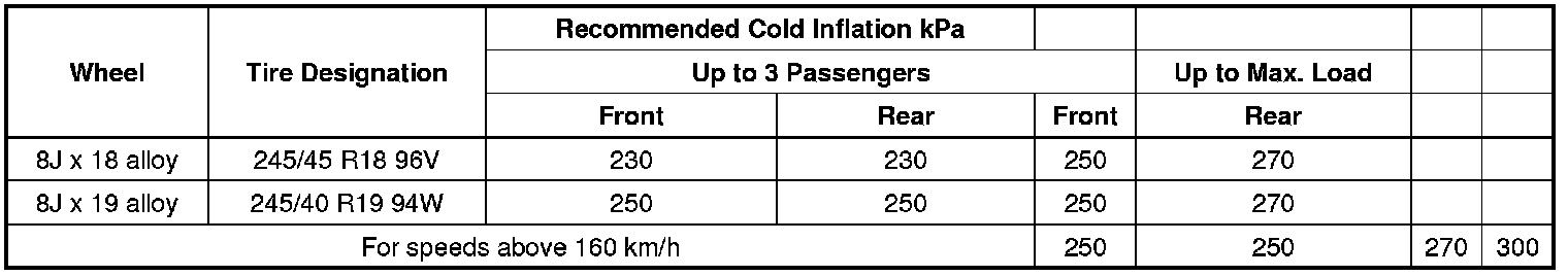 Inflation Pressure Specifications