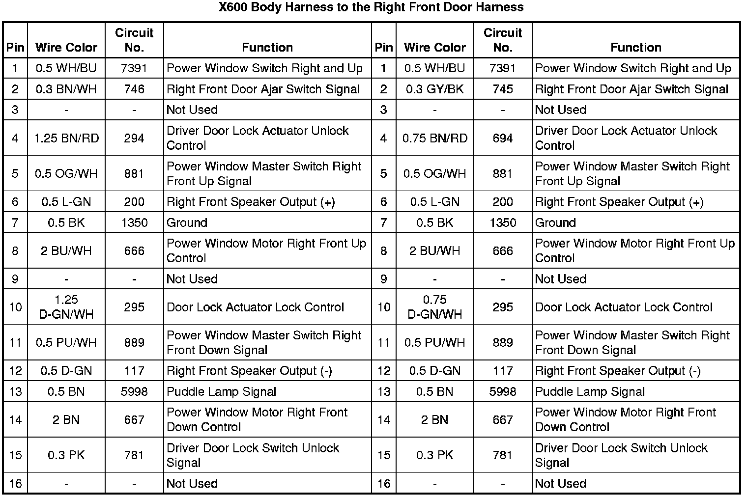 X600 Body Harness to the Right Front Door Harness