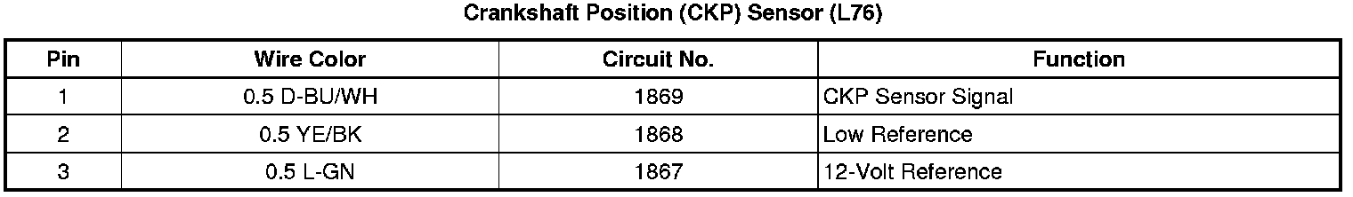 Crankshaft Position (CKP) Sensor (L76 - Gas 8 Cyl, 6.0L SFI, V8)