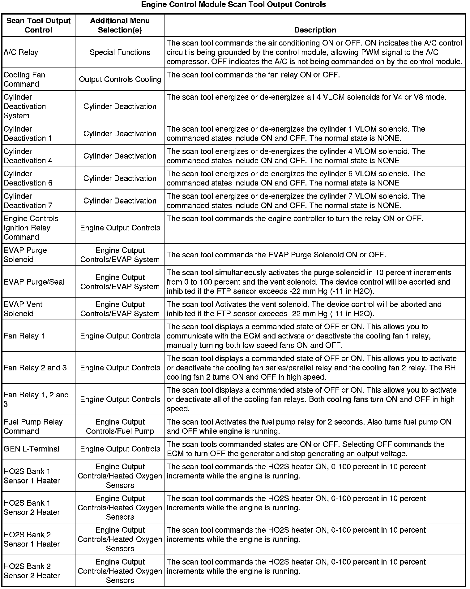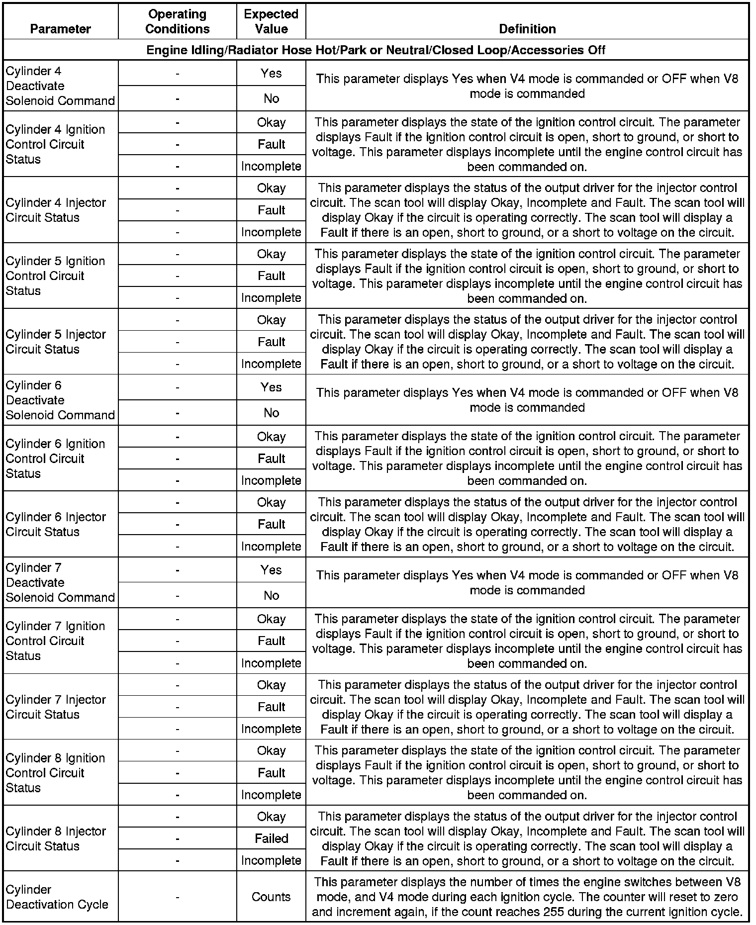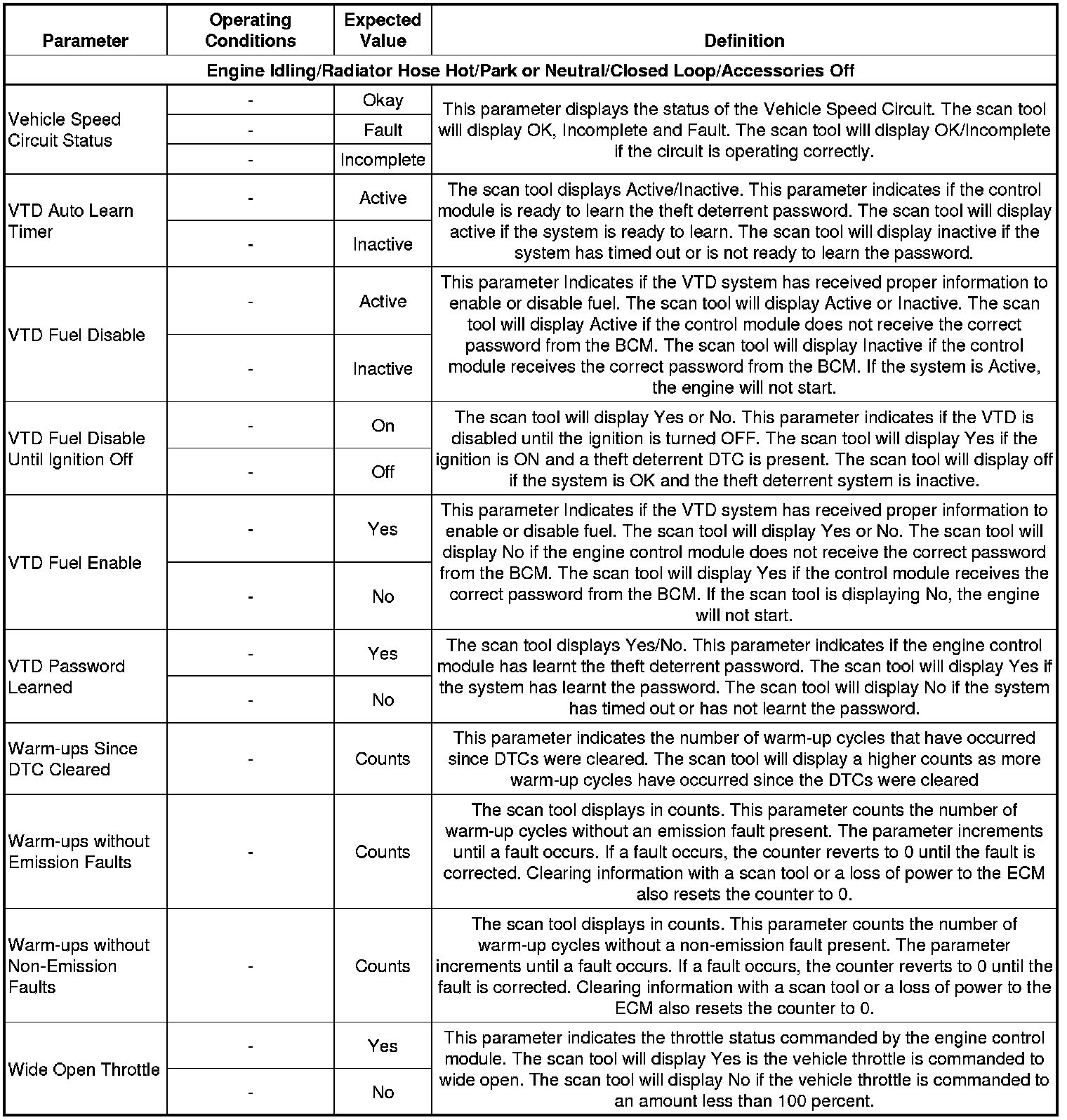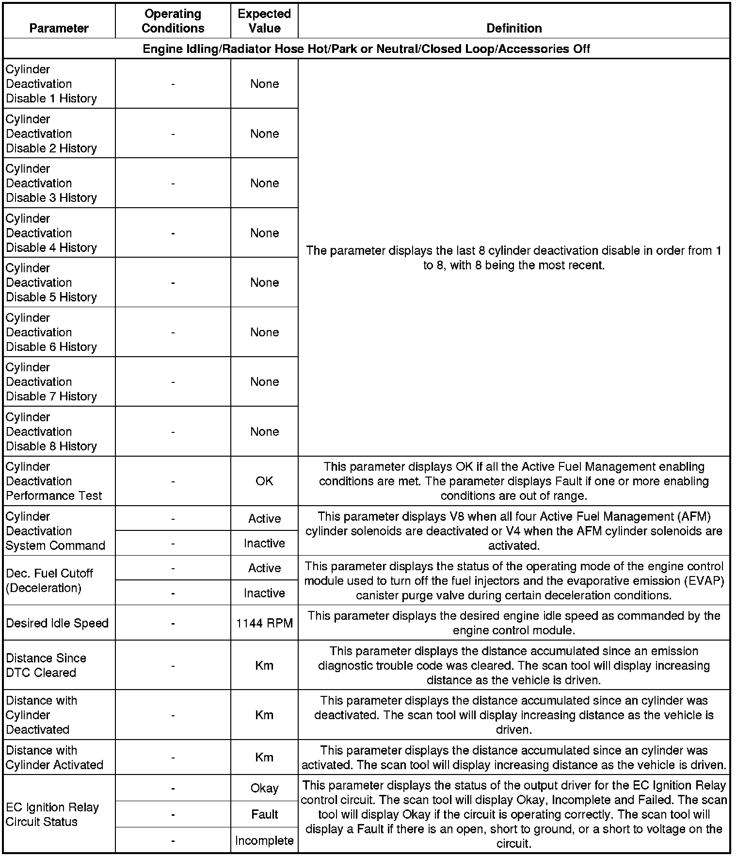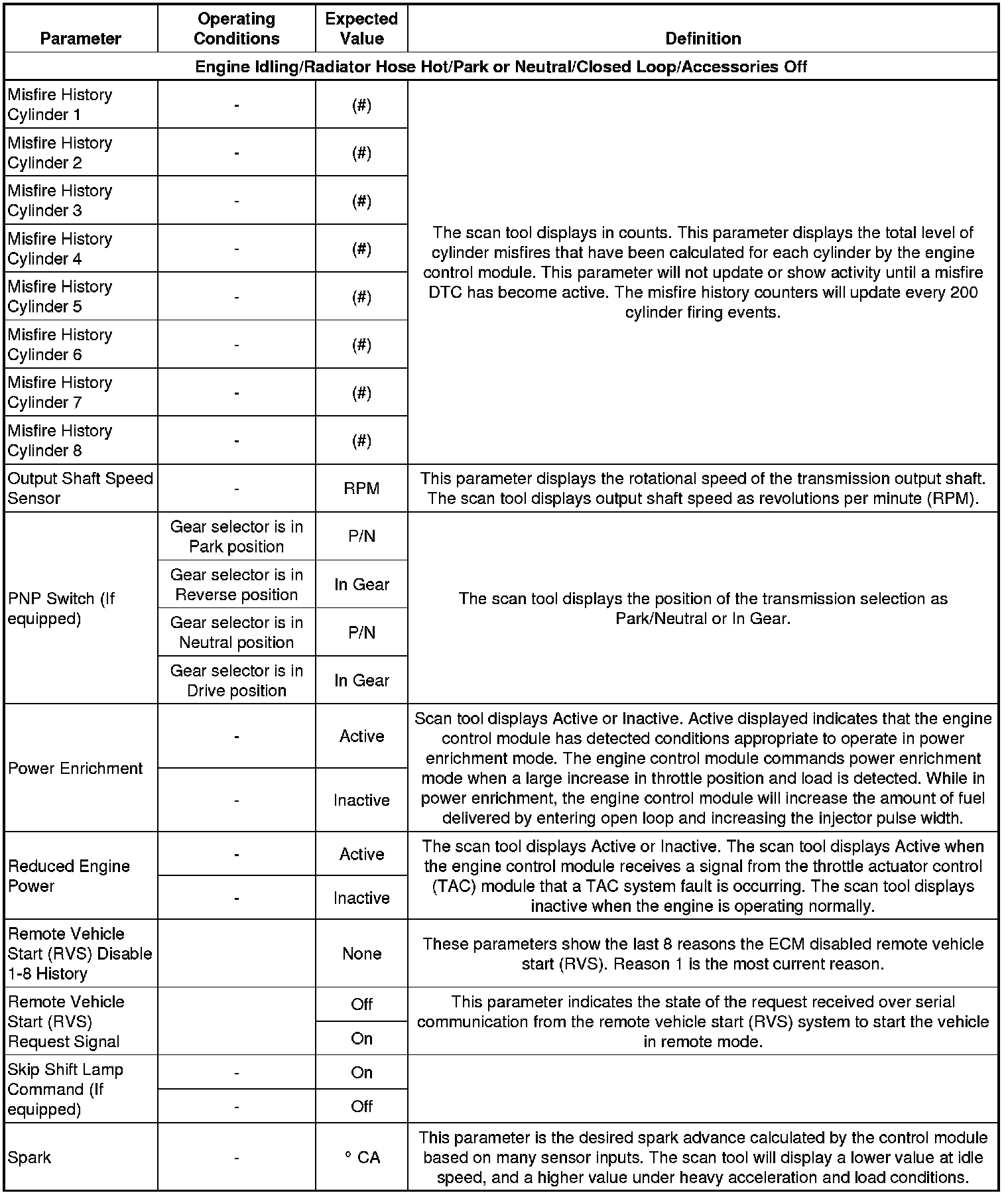 The Engine Scan Tool Data List contains all engine related parameters that are available on the scan tool. The list is arranged in alphabetical order. A parameter may appear in any one of the data lists and in some cases may appear more than once or in more than one data list in order to group certain related parameters together.