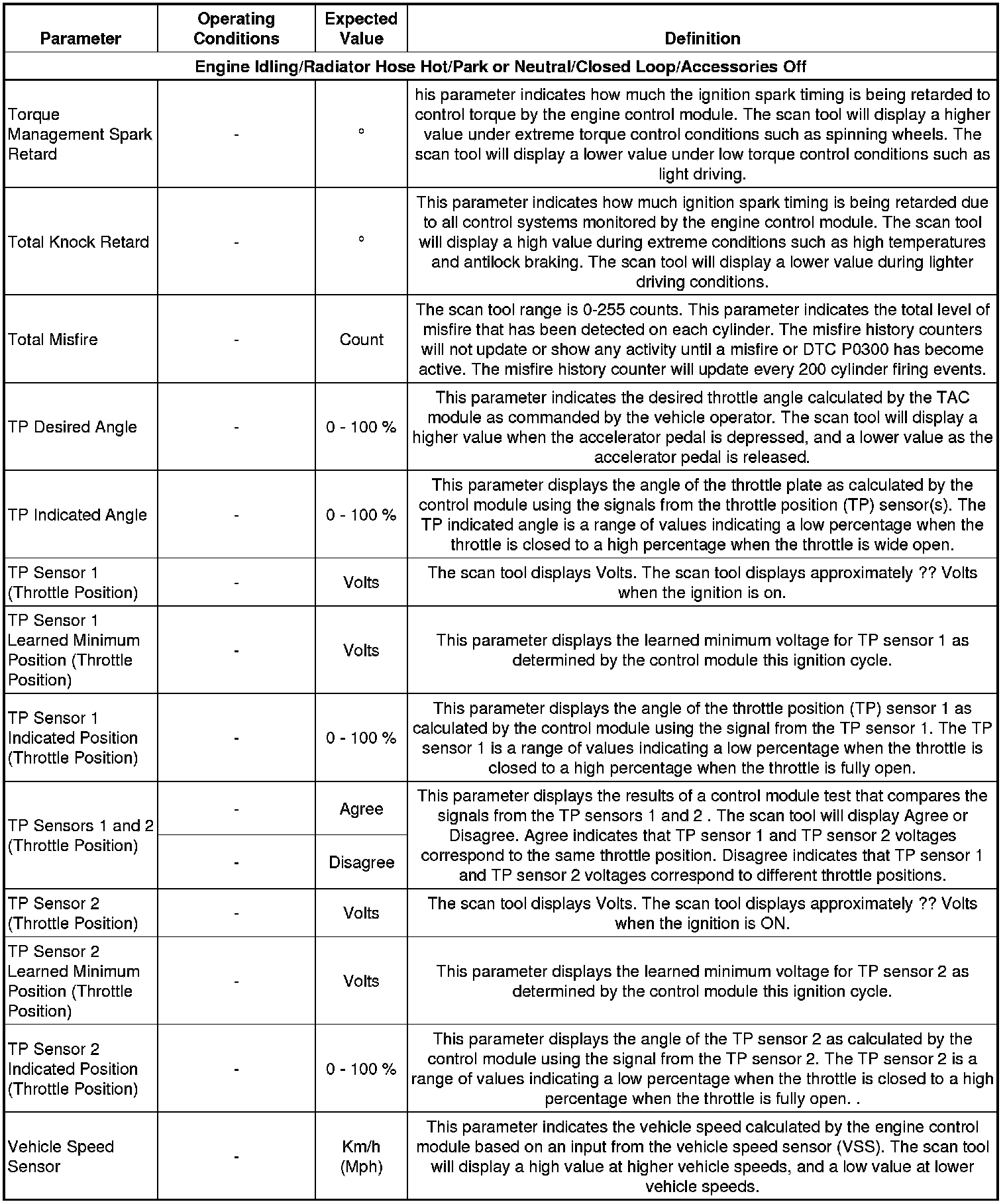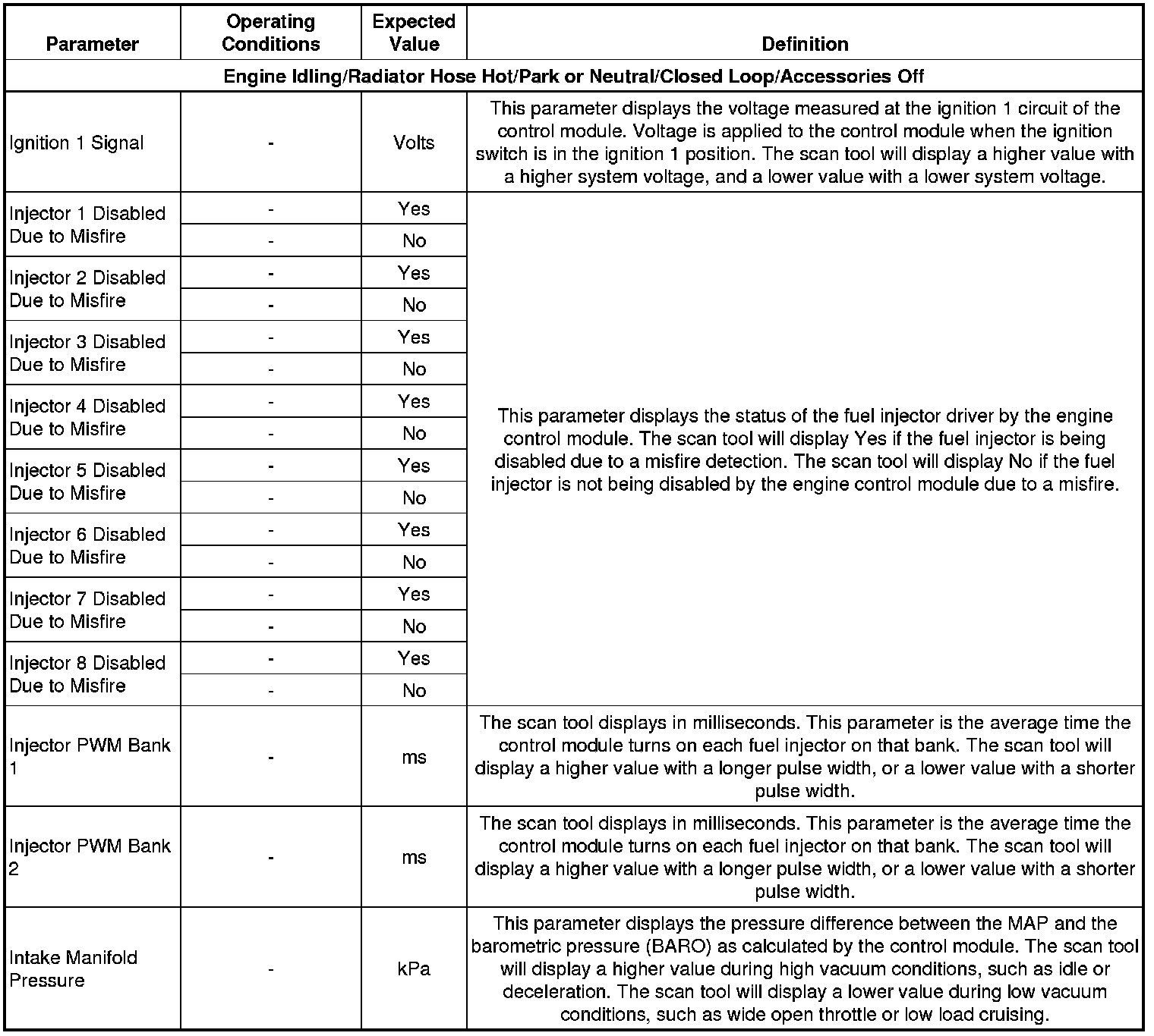 Only the parameters listed below are referenced in this service information for use in diagnosis. If all values are within the typical range described below, refer to Symptoms - Engine Controls (- Symptoms - Engine Controls) .
