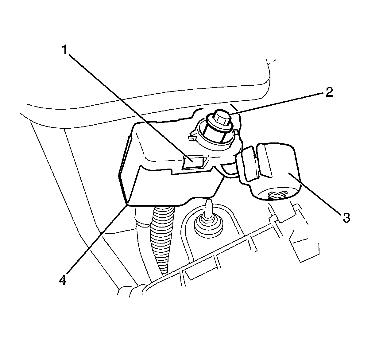 4. Press the retaining clip (1) to remove battery post protective cover (4).