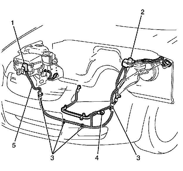 10. Remove the front battery positive cable (5) from the engine compartment.