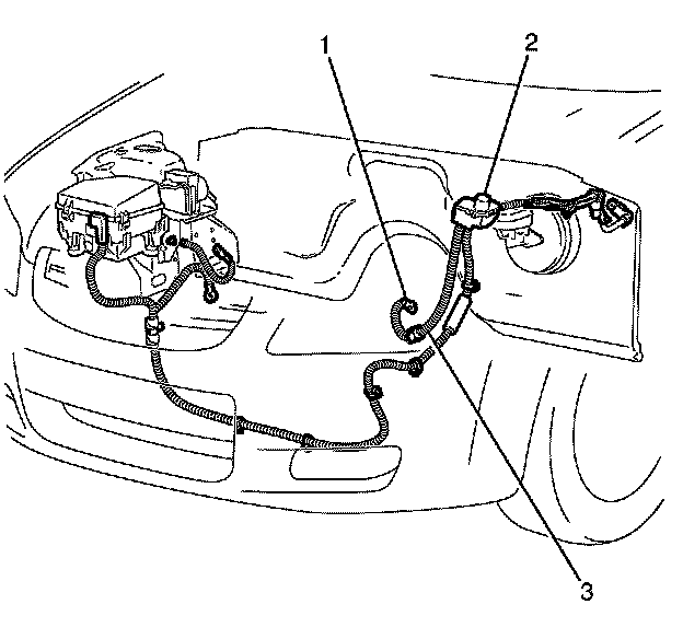 9. Remove the front battery positive cable to chassis retaining clips (3).