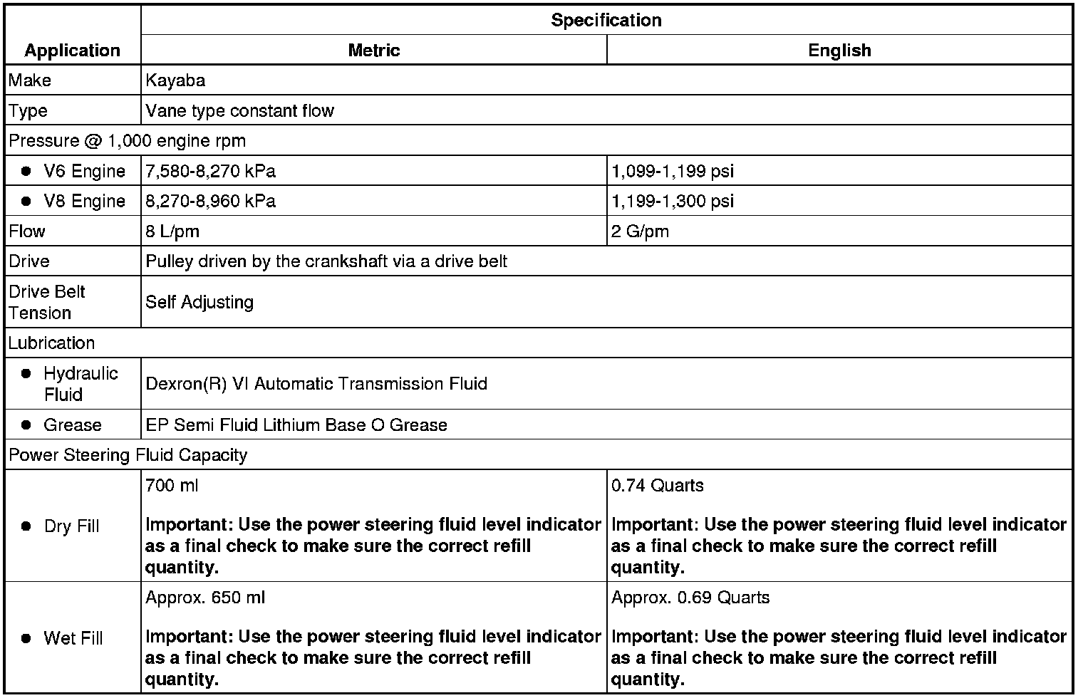 Power Steering Pump: Specifications