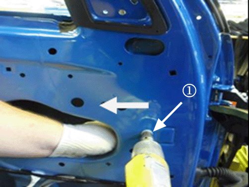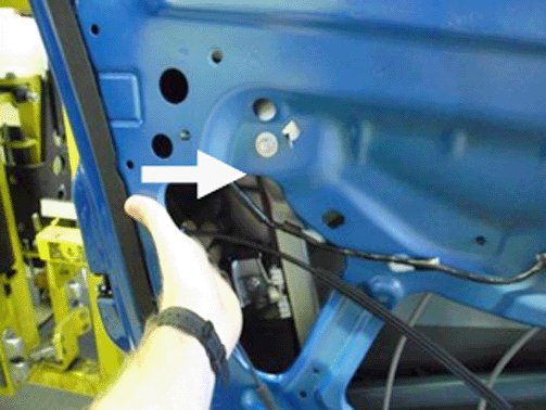 9. Raise the window into the top of the door and tighten the glass clamps through the access holes in the door inner panel.