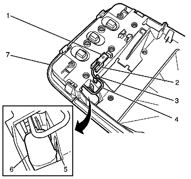 Important: Slide the microphone (6) towards the microphone retainer (5) and lift the microphone (6) away from the dome lamp assembly (7).