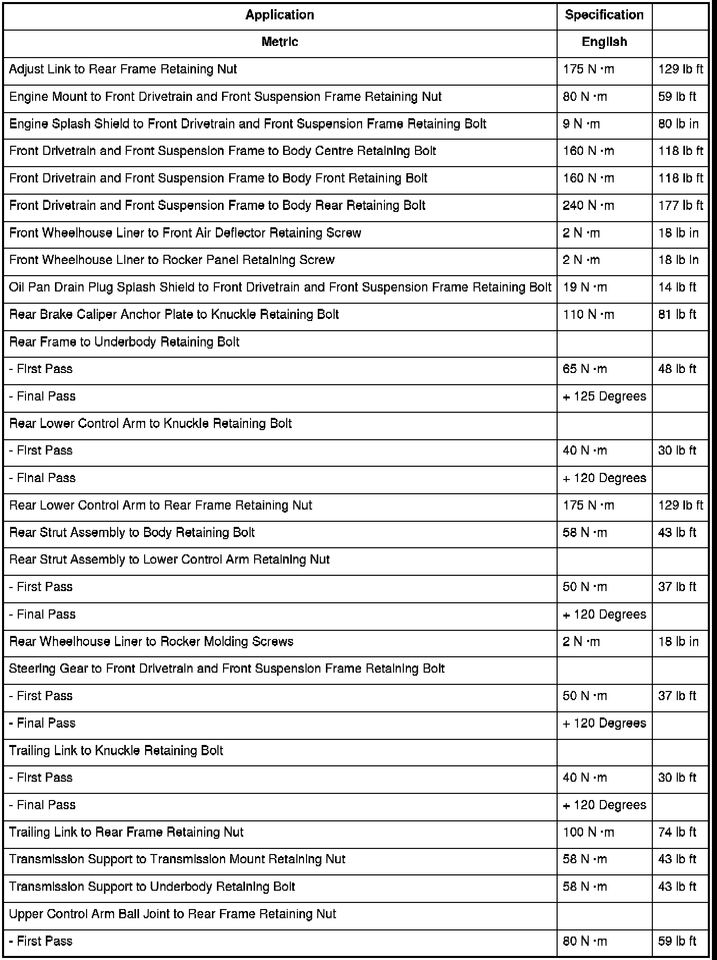 Fastener Tightening Specifications