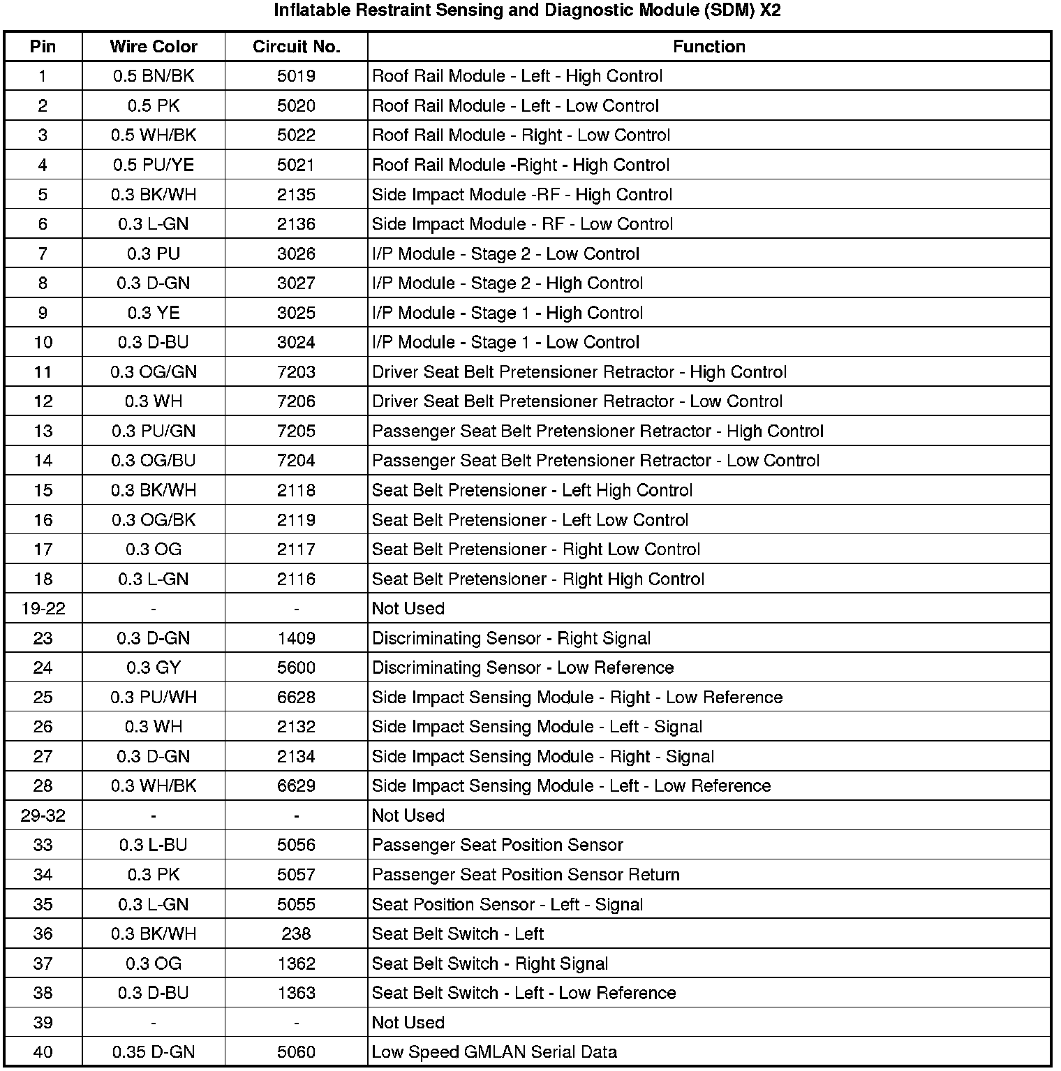 Inflatable Restraint Sensing and Diagnostic Module (SDM) X2