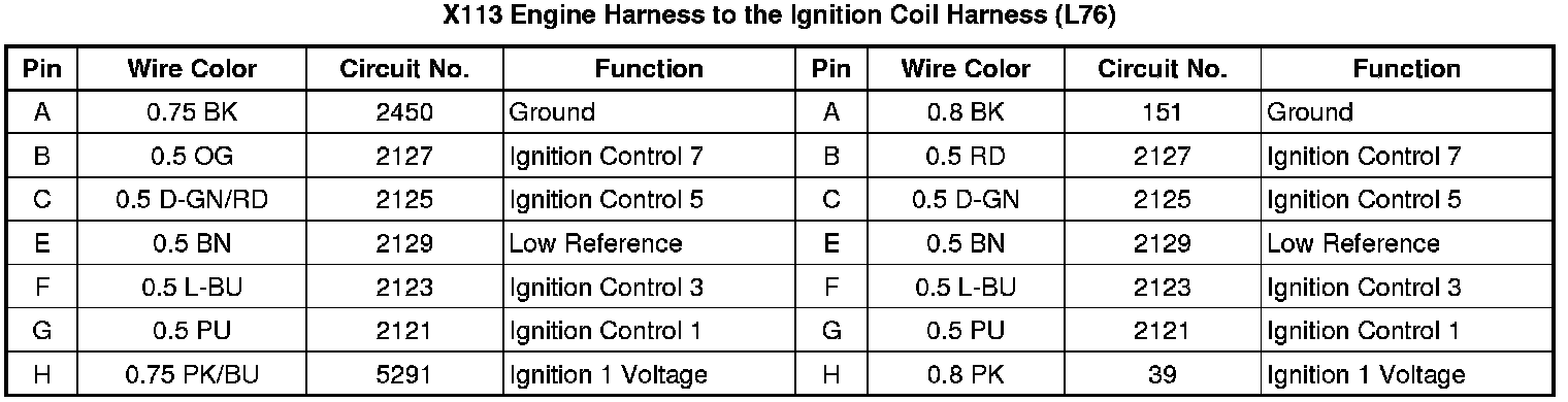 X113 Engine Harness to the Ignition Coil Harness (L76 - Gas 8 Cyl, 6.0L SFI, V8)